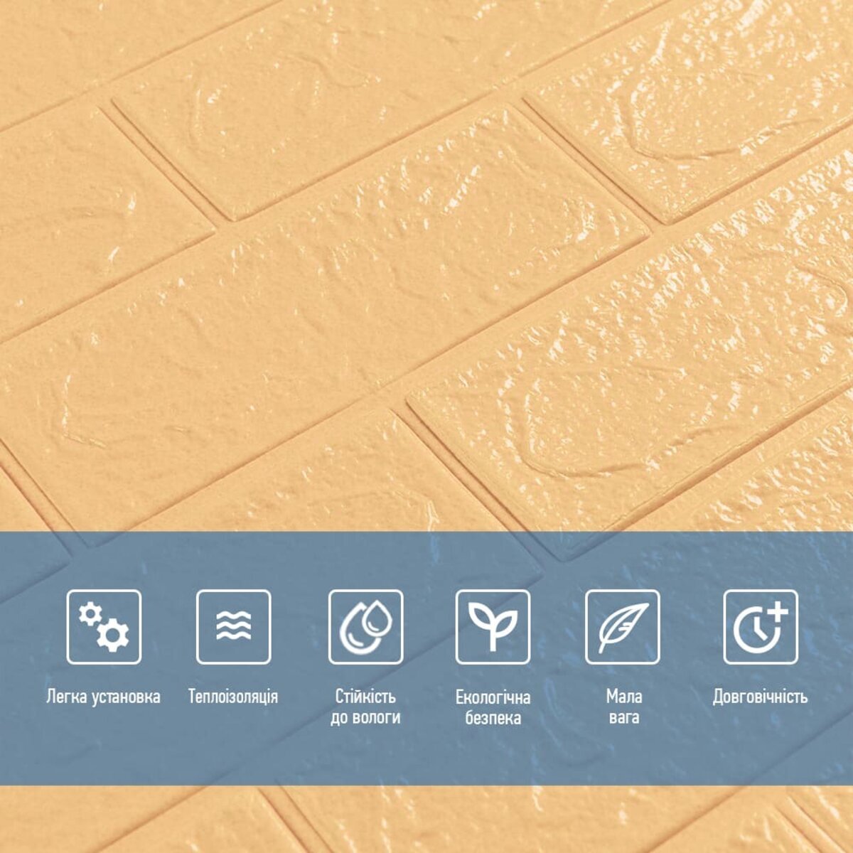 - Легкість монтажу: наявність клейового шару дозволяє встановити панелі без необхідності застосування додаткових матеріалів.