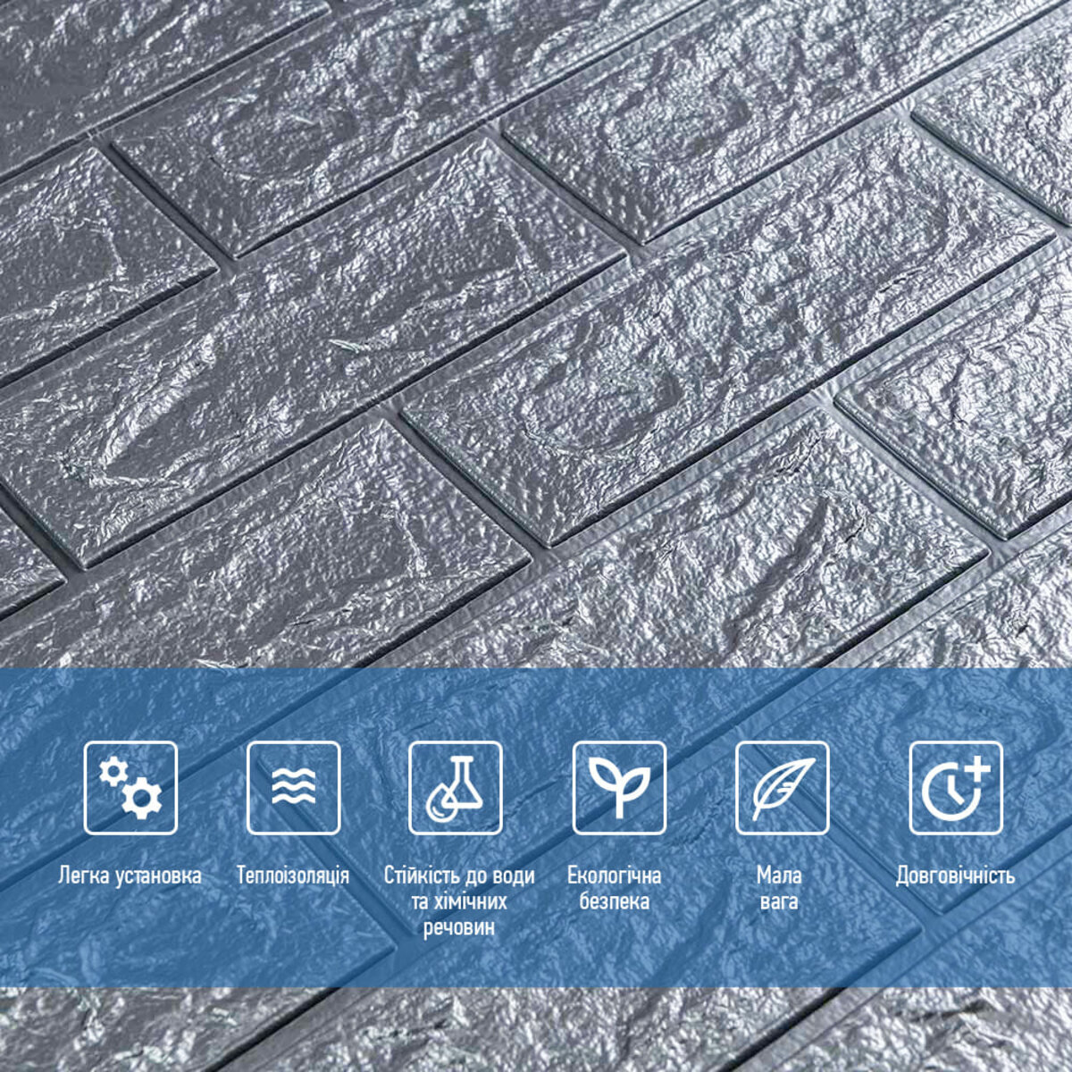 Відгуки - 3D панель самоклеюча 700х770х3мм цегла Срібло (017-3) SW-00000230