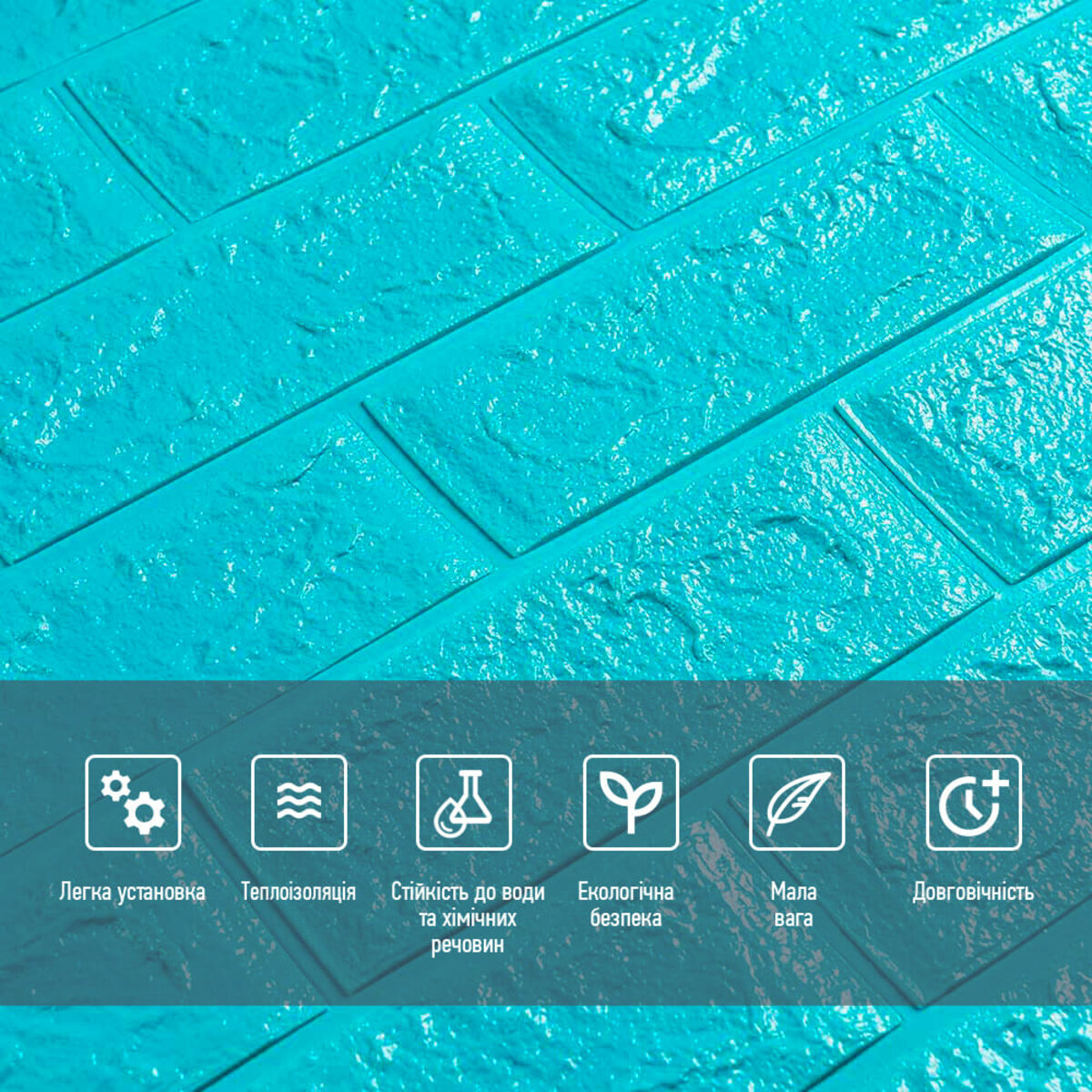 Відгуки - 3D панель самоклеюча 700х770х5мм цегла Бірюза (002-5) SW-00000084