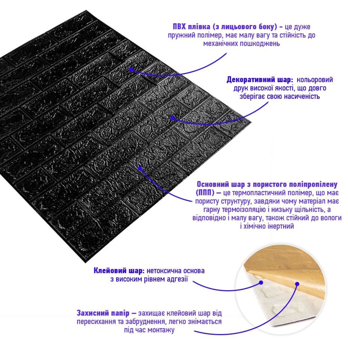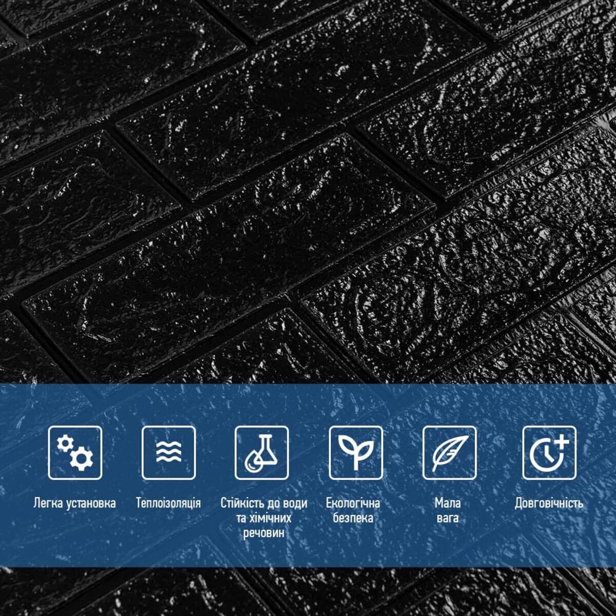 Характеристики - 3D панель самоклеюча 700х770х5мм цегла Чорний (019-5) SW-00000151