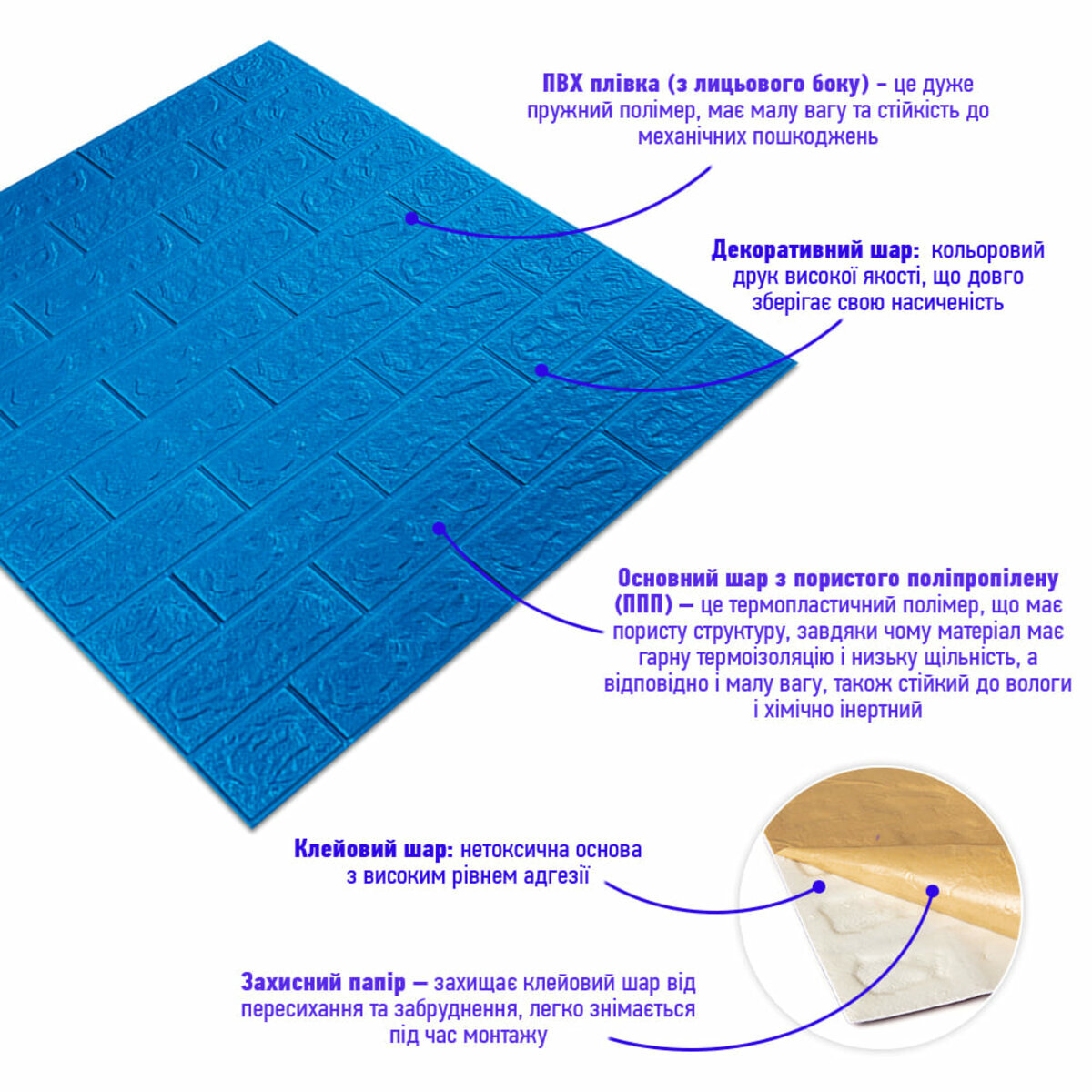 Відгуки - 3D панель самоклеюча 700х770х5мм цегла Синій (003-5) SW-00000154