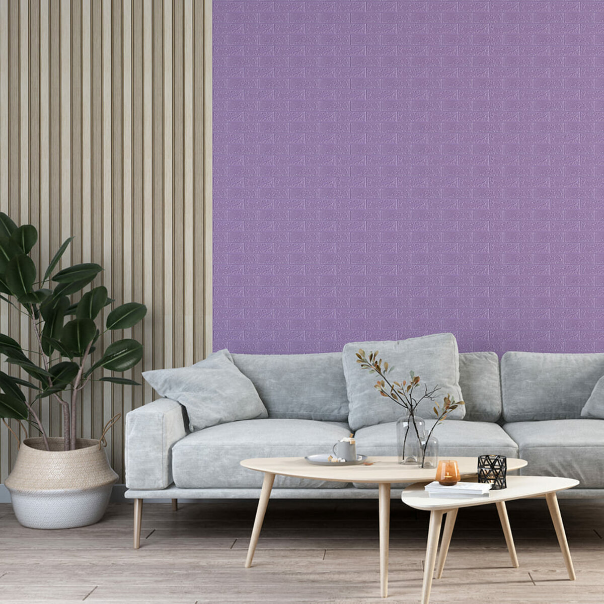 3D панель самоклеюча 700х770х5мм цегла світло - фіолетова (015-5) SW-00000083