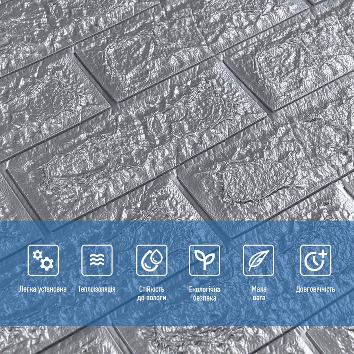 Відгуки - 3D панель самоклеюча 700х770х7мм цегла Срібло (017-7) SW-00000059