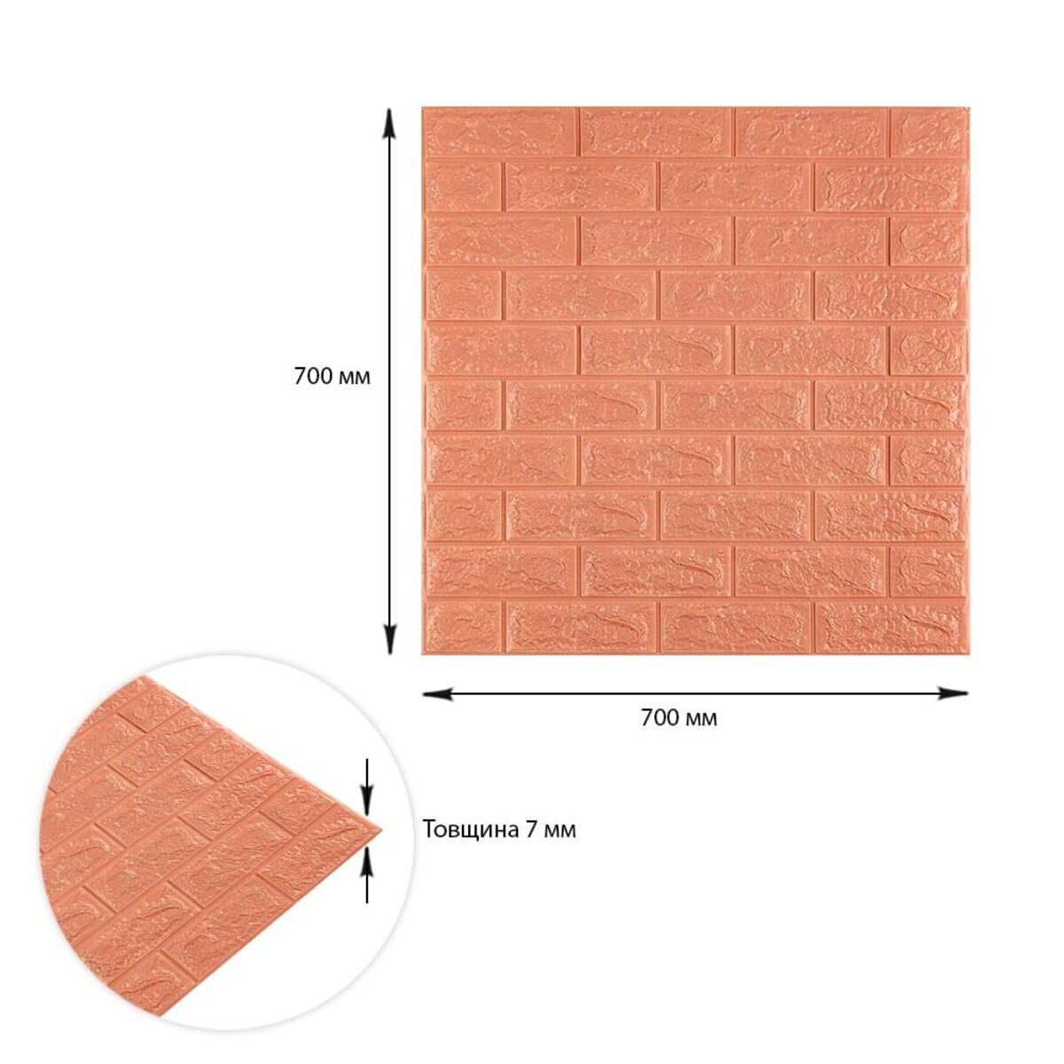 Опис - 3D панель самоклеюча 700x700x7мм цегла Пудра SW-00001800