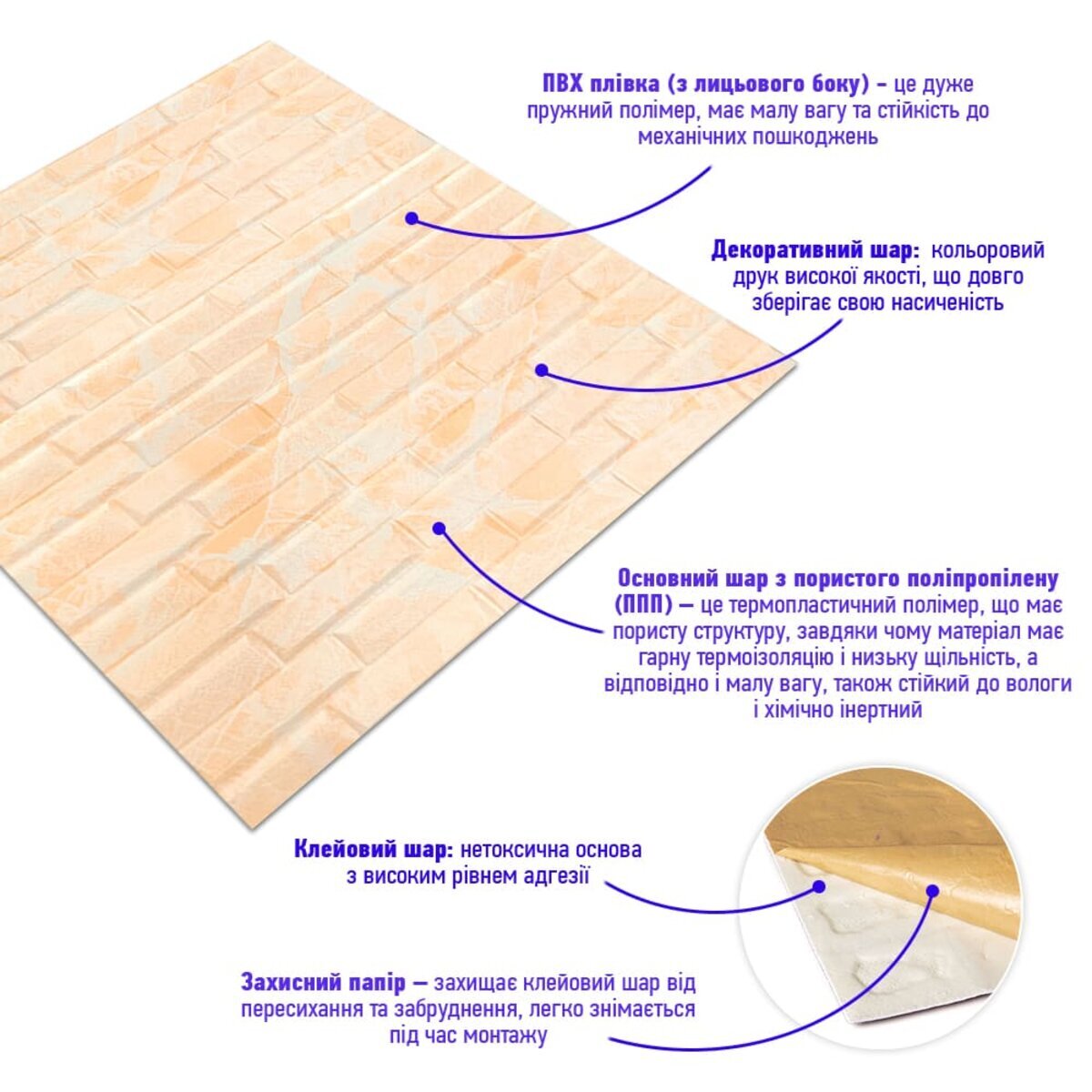 Характеристики - 3D панель самоклеюча кладка 700х770х7мм Жовто-біла (039) SW-00000563