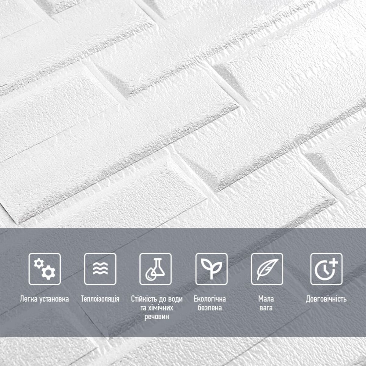 Характеристики - 3D панель самоклеюча кладка 770х700х5мм Біла (031) SW-00000167