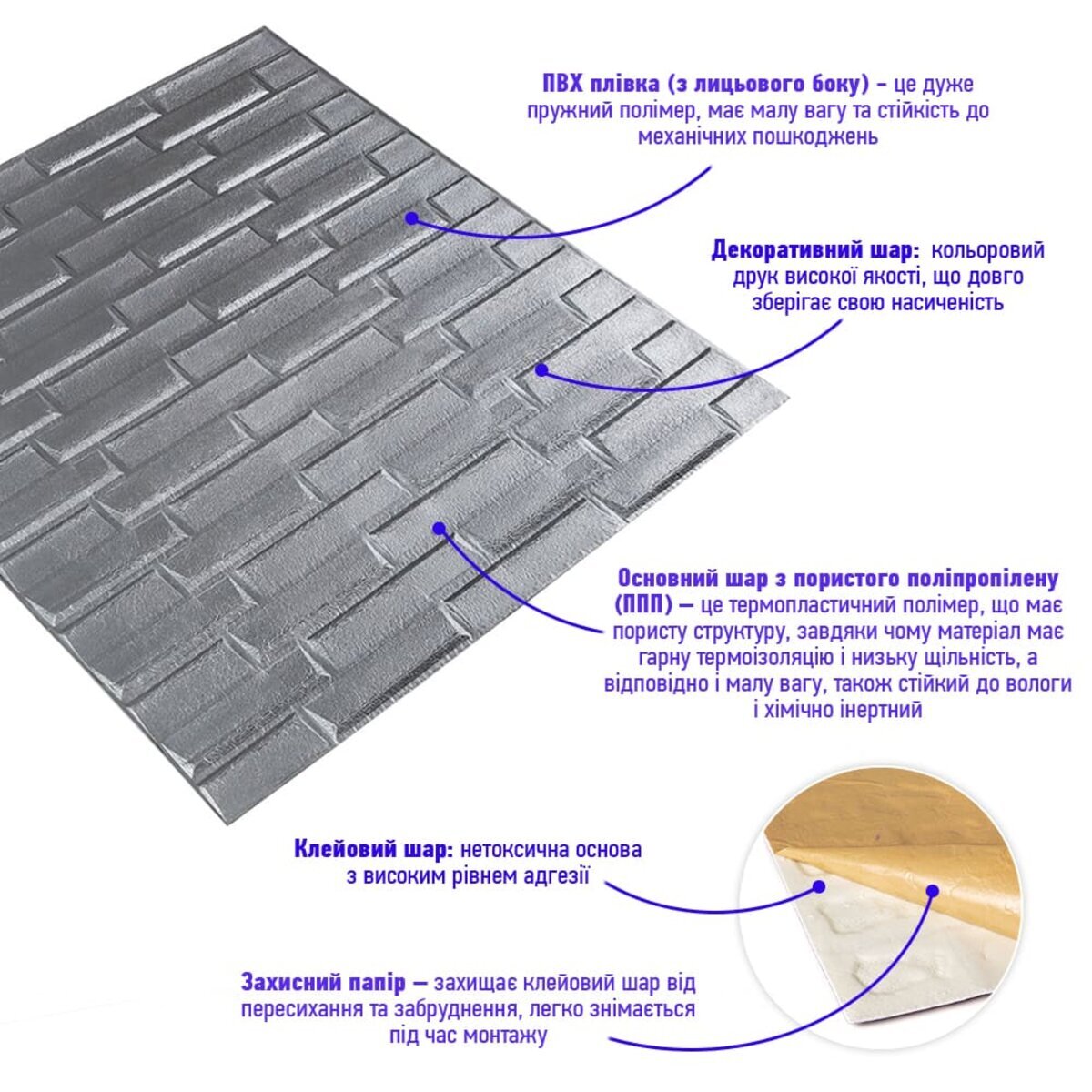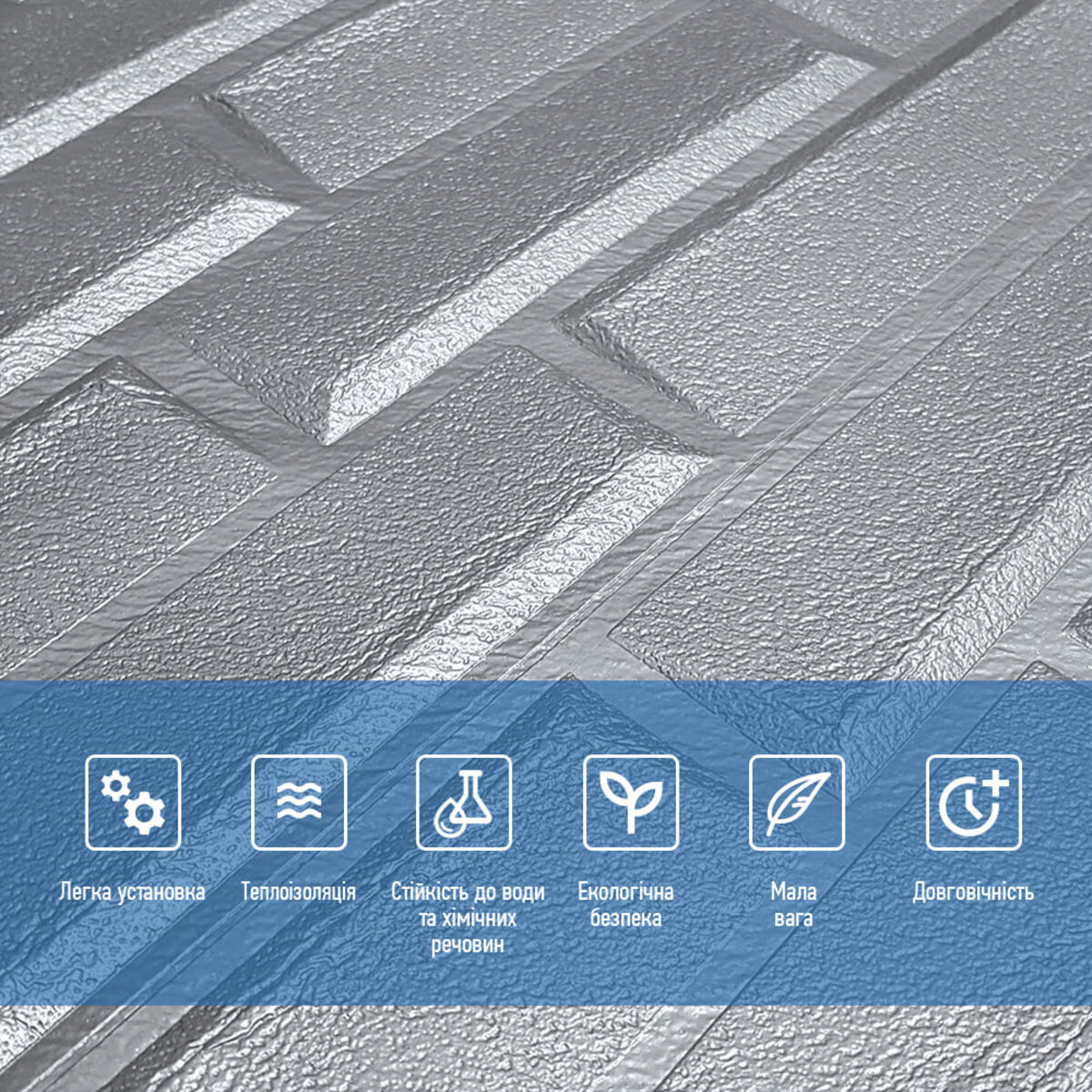Характеристики - 3D панель самоклеюча кладка 770х700х5мм Срібло (034) SW-00000217