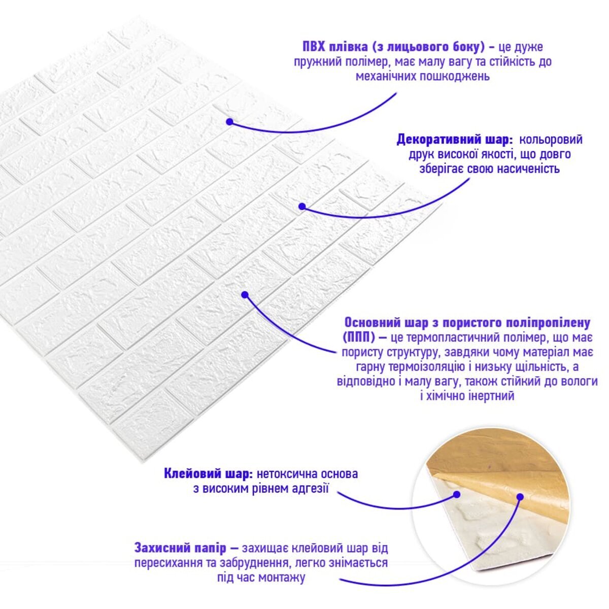 Характеристики - 3D панель самоклеюча цегла 690х780х5мм Білий Матовий (001-5M) SW-00000587