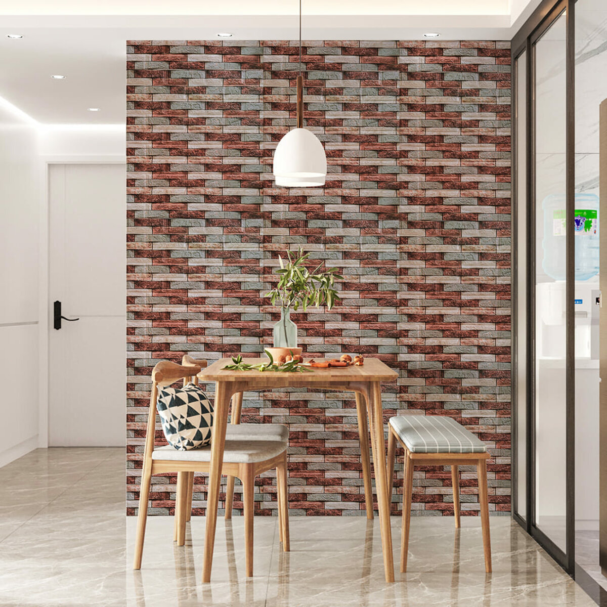 3D панелі самоклеючі – декоративне покриття для стін, виконане з легкого та міцного матеріалу – пористого поліпропілену (ППП). Основна особливість – рельєфний малюнок у вигляді цегли у широкому різноманітті кольорів та наявність клейового шару, що дозволяє встановити панелі без необхідності застосування додаткових матеріалів.