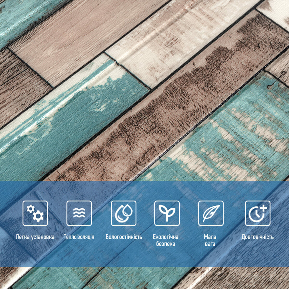 Характеристики - Декоративна 3D панель самоклейка 700х700х6мм Синє дерево (088) SW-00000275