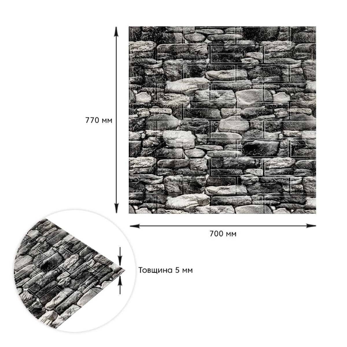 Характеристики - Декоративна 3D панель самоклейка 700х770х5мм Чорний камінь Катеринославський (040) SW-00000483