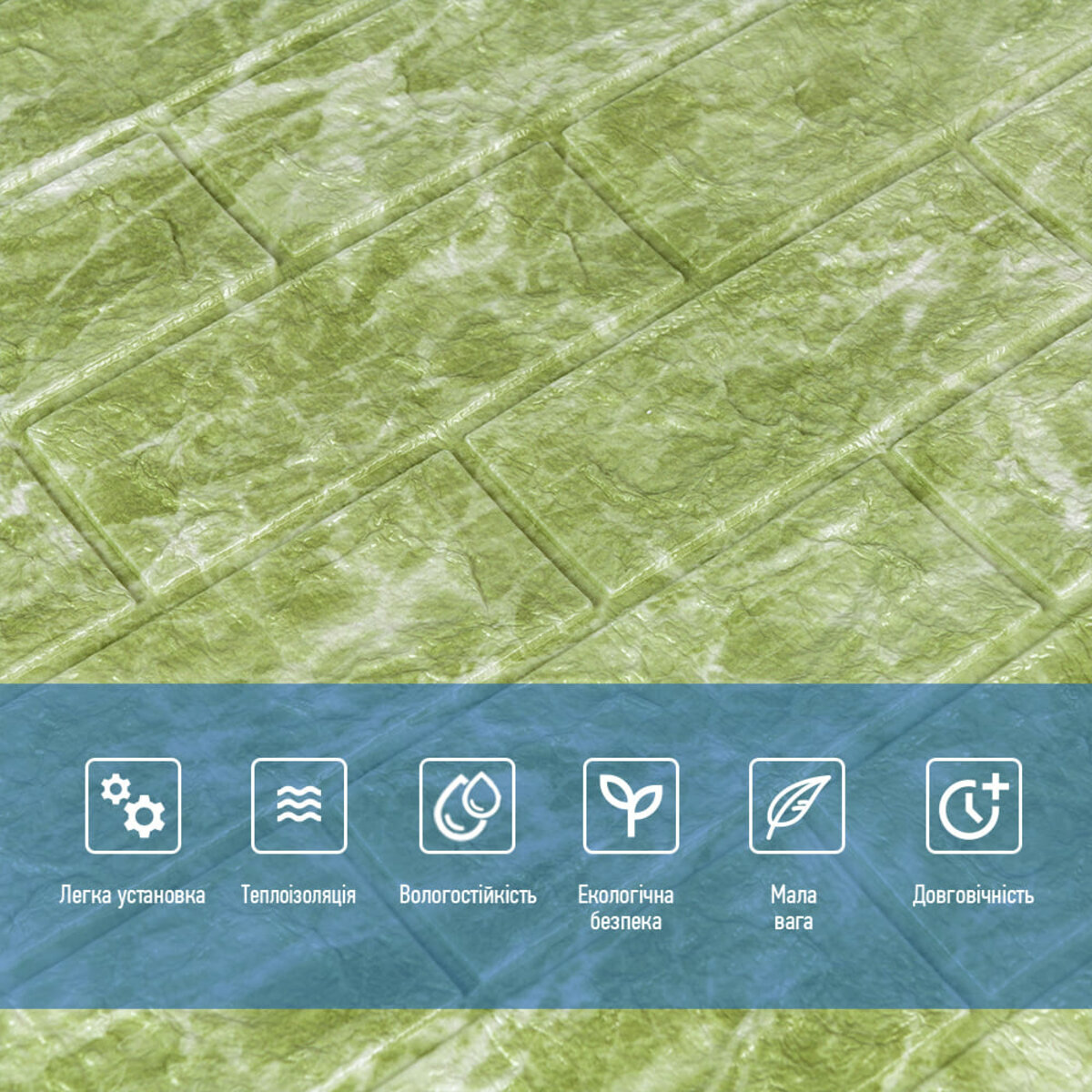 Характеристики - Декоративна 3D панель самоклейка Глибокий зелений (цегла) (069) SW-00000171