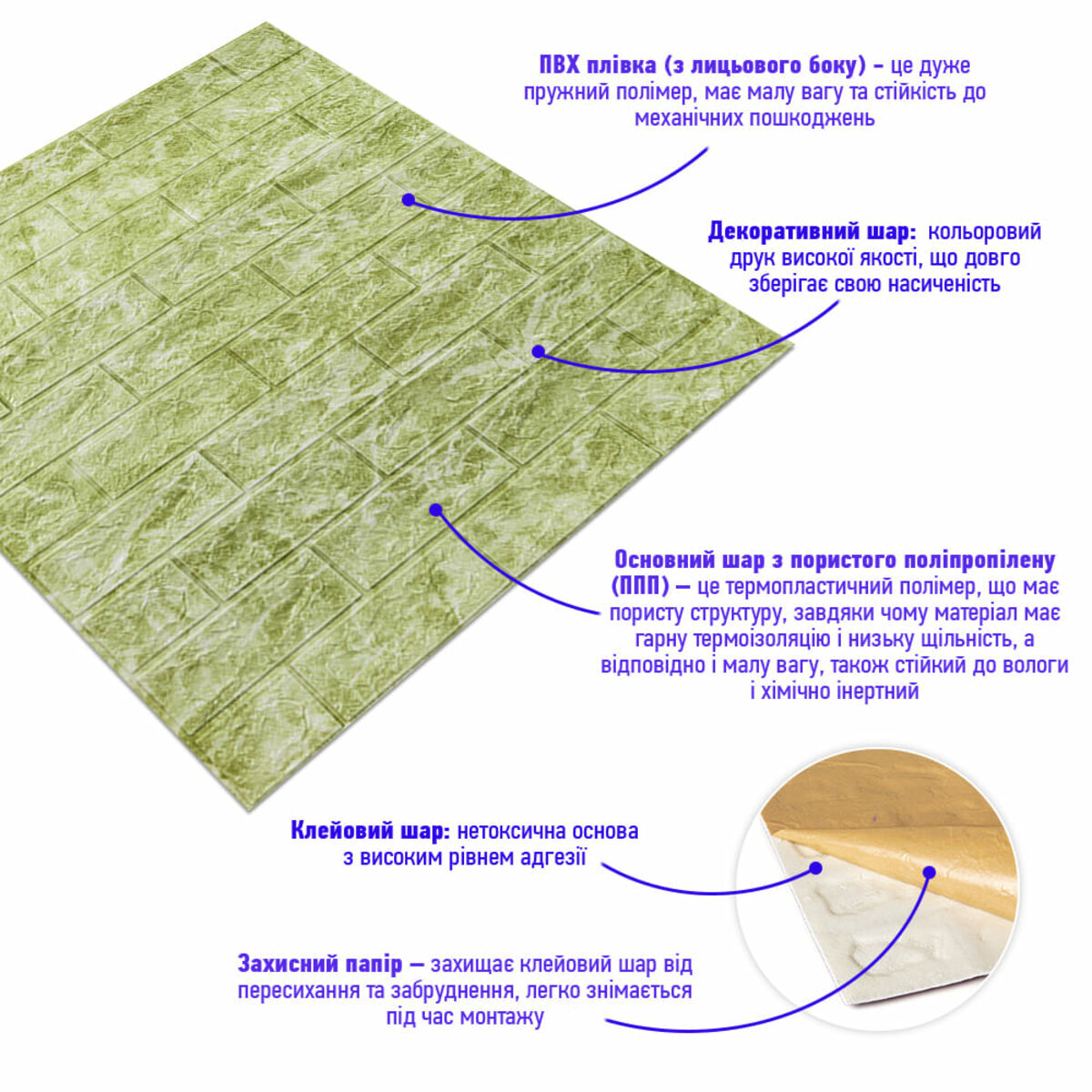 - Матеріал не виділяє шкідливих речовин. Панелі безпечні для здоров'я людей та тварин.