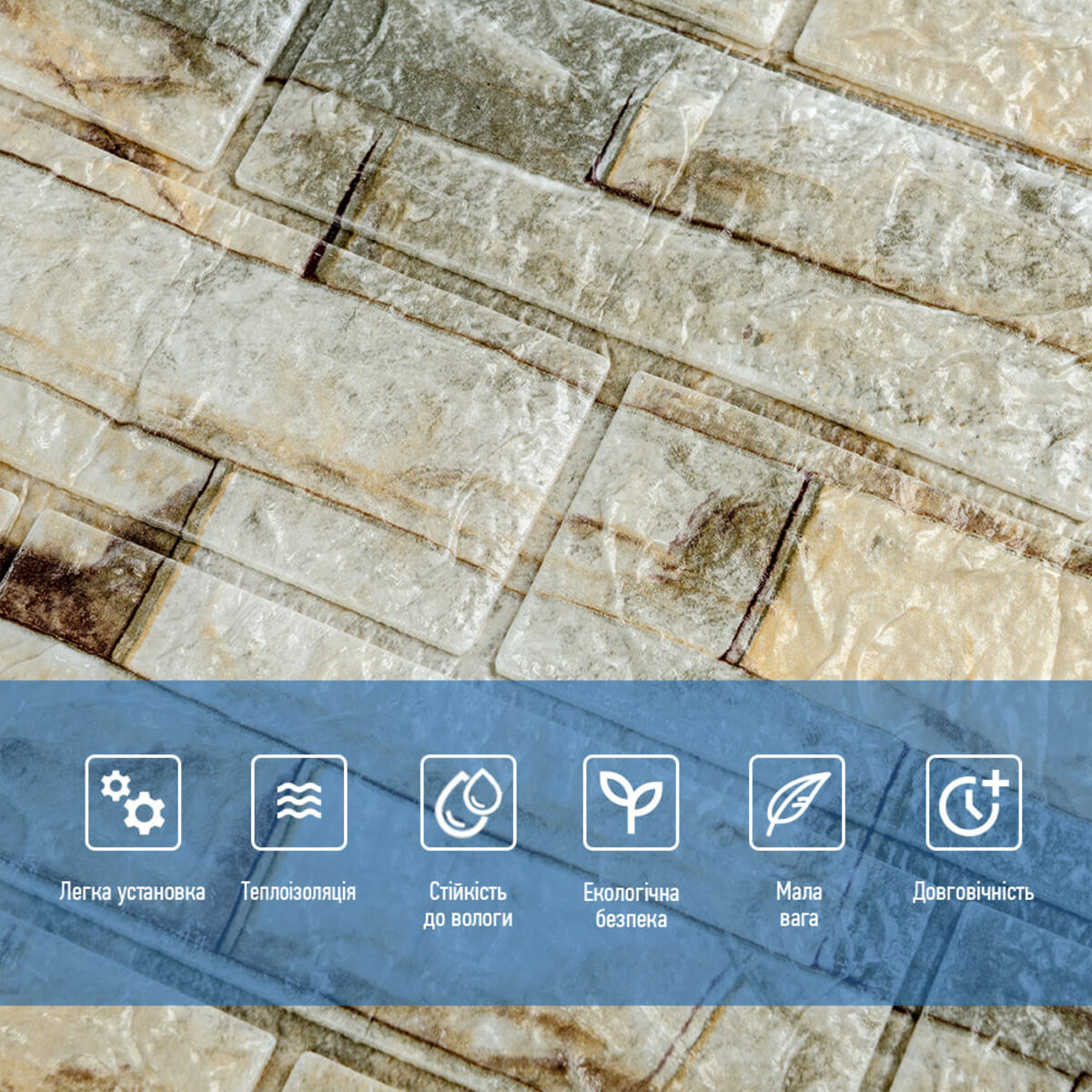 - Легкість монтажу: наявність клейового шару дозволяє встановити панелі без необхідності застосування додаткових матеріалів.