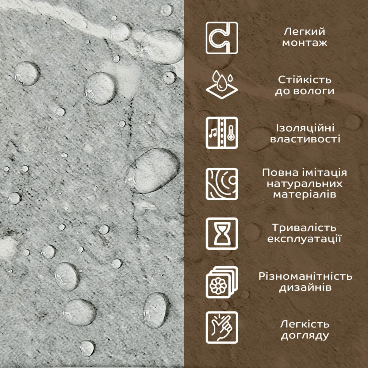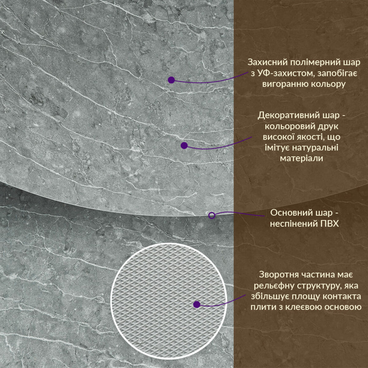 Характеристики - Декоративна плита ПВХ 1,22м х 2,44м х 3мм Металік мармур SW-00001409