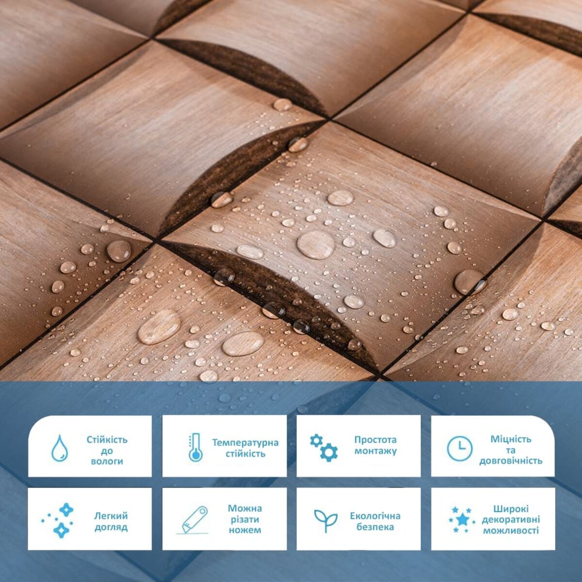 Панелі дуже прості у монтажі, практичні у використанні та довговічні. Для монтажу панелей Вам потрібен буде: клей для ПВХ, ножиці або монтажний ніж, рівень чи лінійка, скотч (для фіксації свіжих панелей).