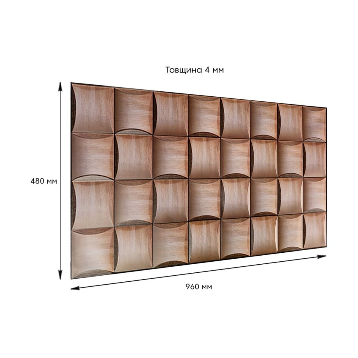 Розмір ПВХ панелі – 960ммх480мм. Товщина – 4 мм.