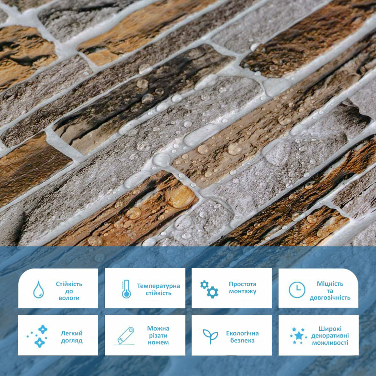 Панелі дуже прості у монтажі, практичні у використанні та довговічні. Для монтажу панелей Вам потрібен буде: клей для ПВХ, ножиці або монтажний ніж, рівень чи лінійка, скотч (для фіксації свіжих панелей).