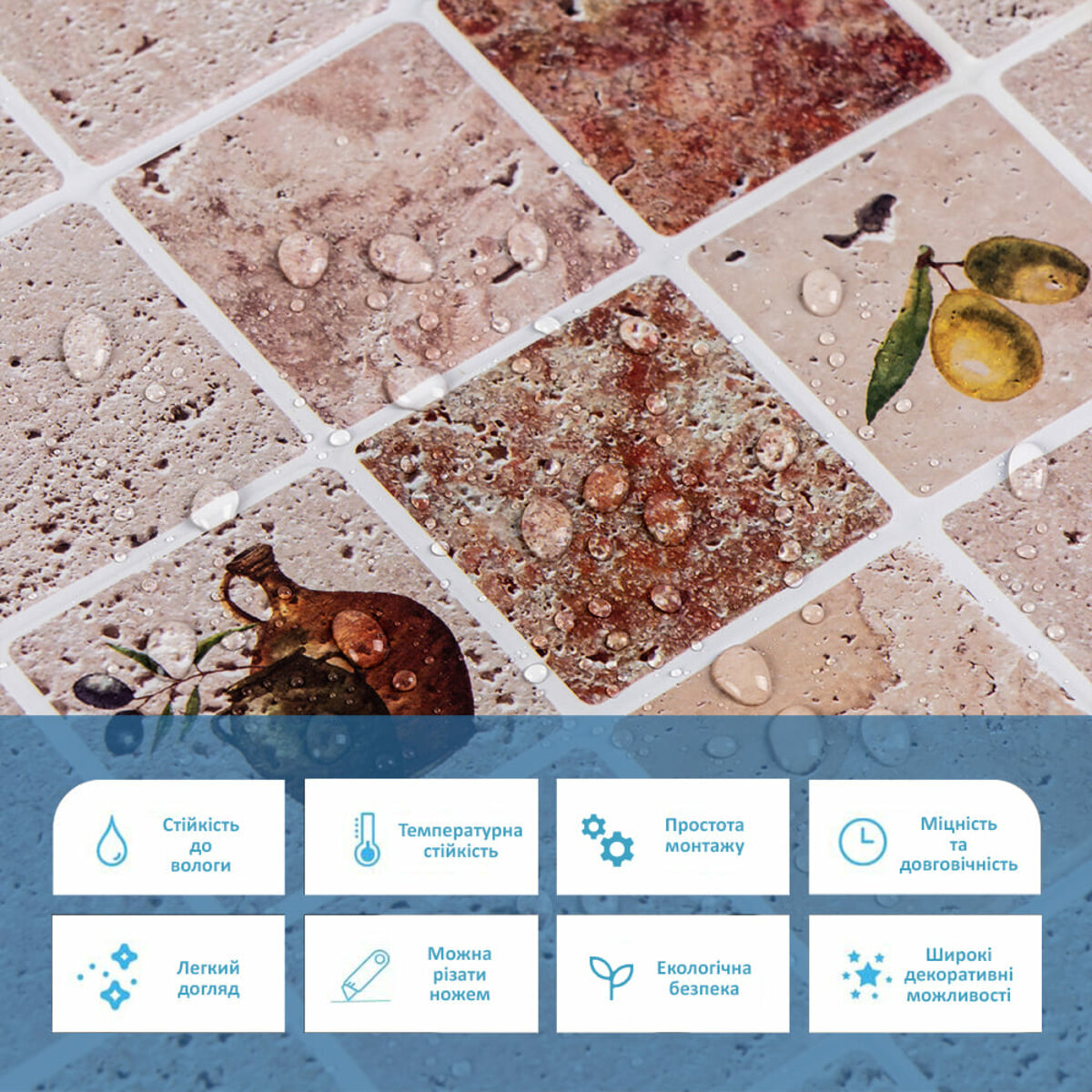 Панелі дуже прості у монтажі, практичні у використанні та довговічні. Для монтажу панелей Вам потрібен буде: клей для ПВХ, ножиці або монтажний ніж, рівень чи лінійка, скотч (для фіксації свіжих панелей).