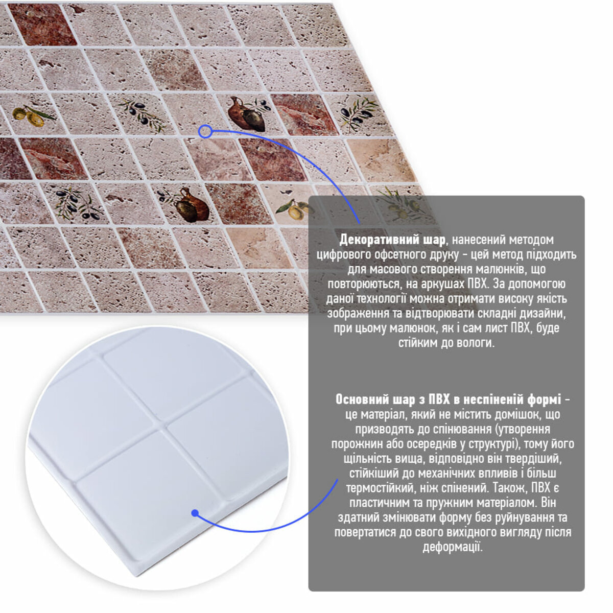 Розмір ПВХ панелі – 960ммх480мм. Товщина – 4 мм.
