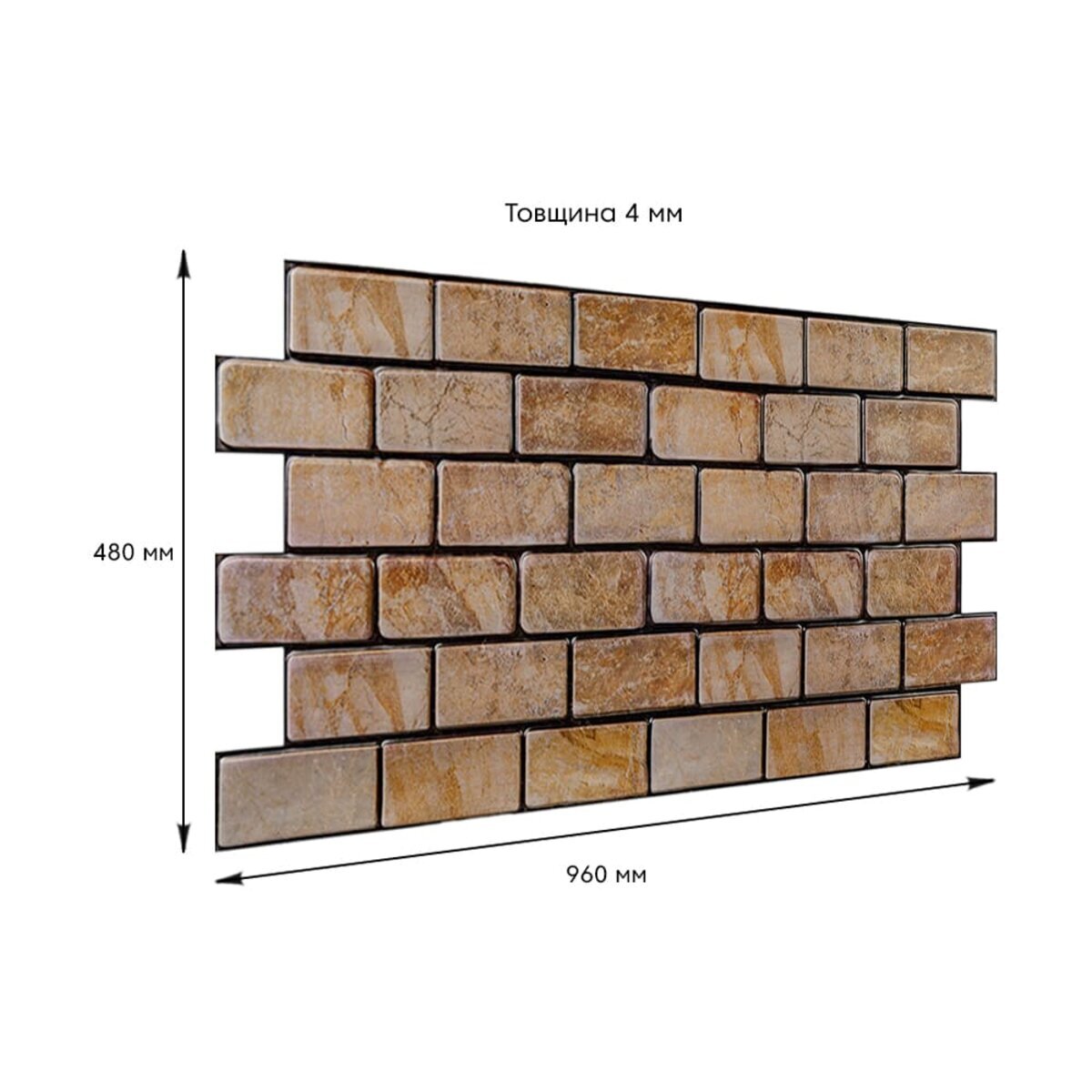 Розмір ПВХ панелі – 960ммх480мм. Товщина – 4 мм.