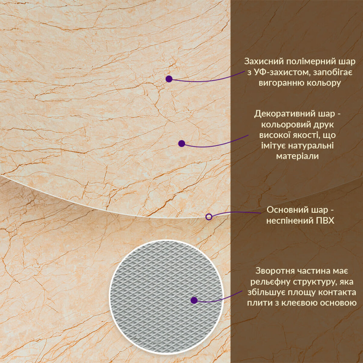 Характеристики - Декоративна ПВХ плита 1,22м х 2,44м х 3мм Бежевий мармур SW-00001397