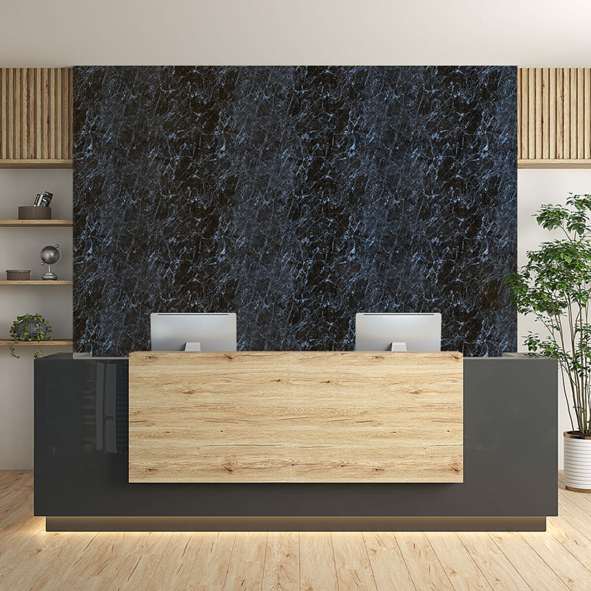 Опис - Декоративна ПВХ плита 1,22м х 2,44м х 3мм Чорний мармур SW-00001404