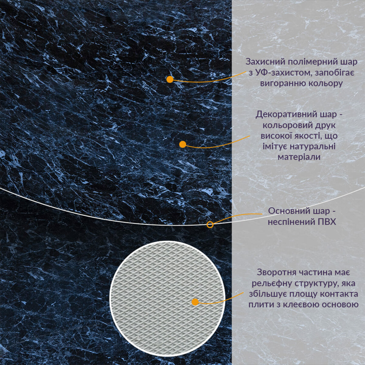 - Імітація натурального матеріалу (мармур, камінь)