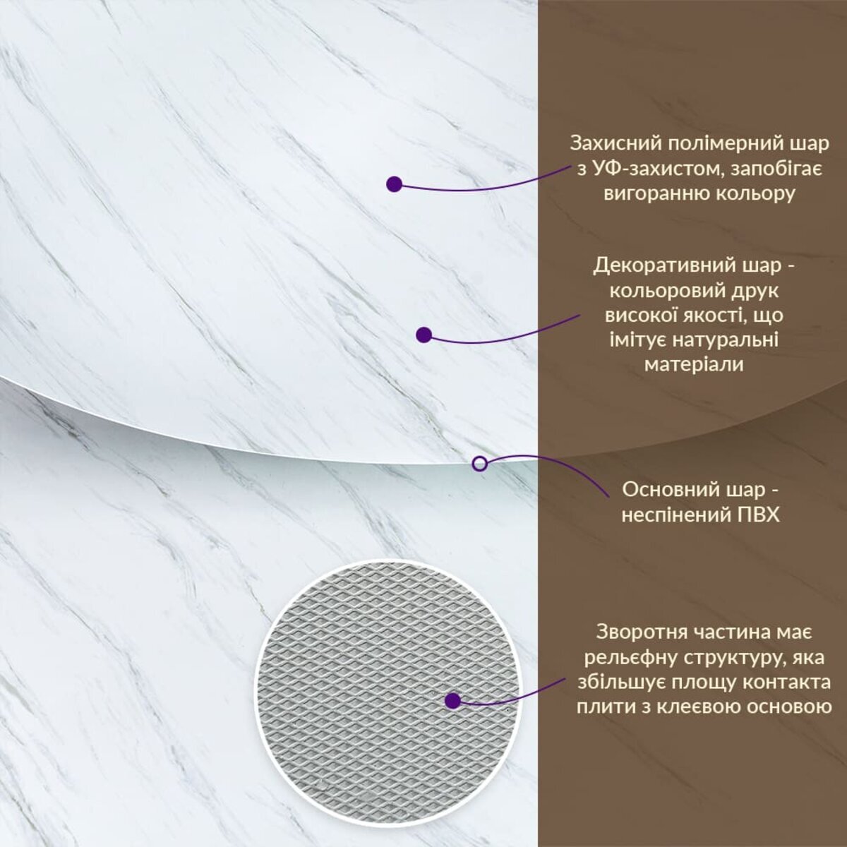 - Імітація натурального матеріалу (мармур, камінь)