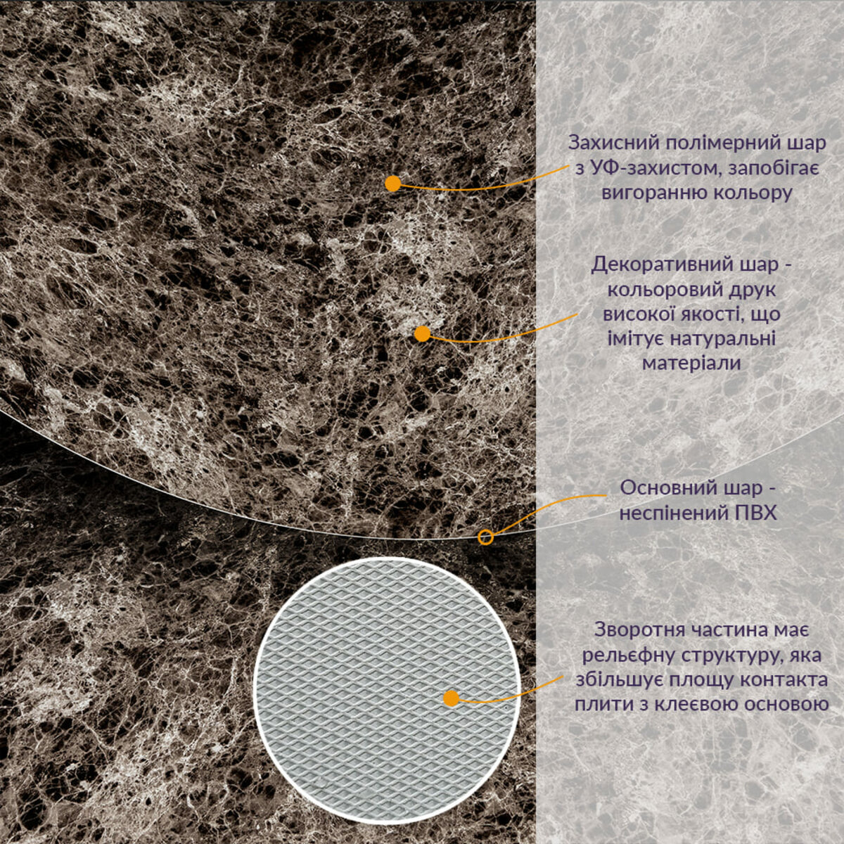 - Імітація натурального матеріалу (мармур, камінь)