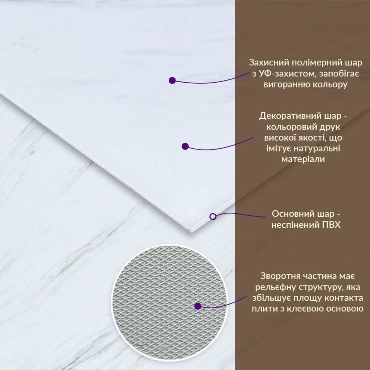 - Імітація натурального матеріалу (мармур, камінь)