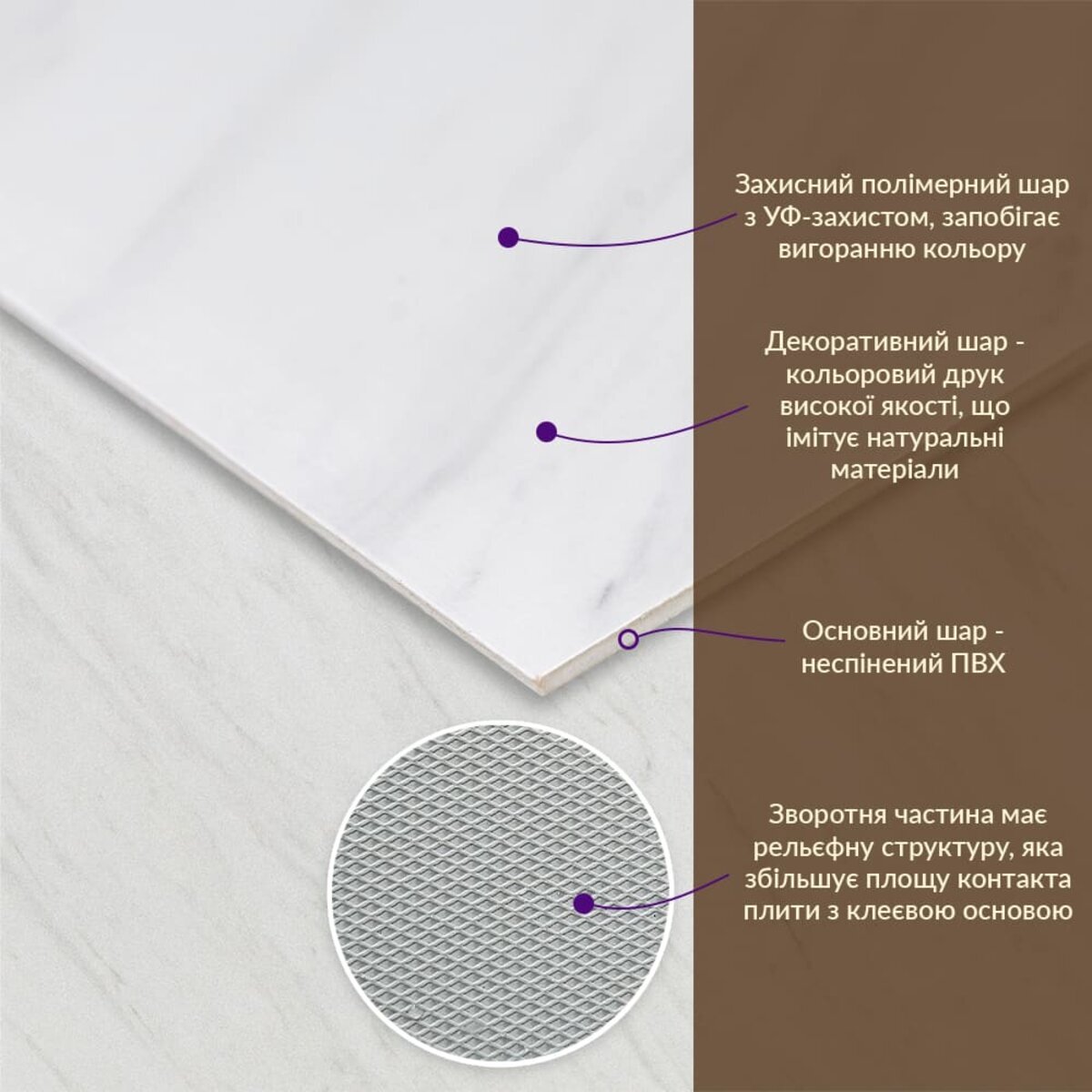 - Імітація натурального матеріалу (мармур, камінь)