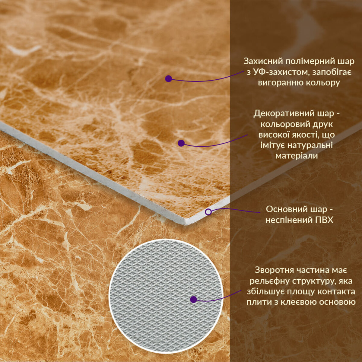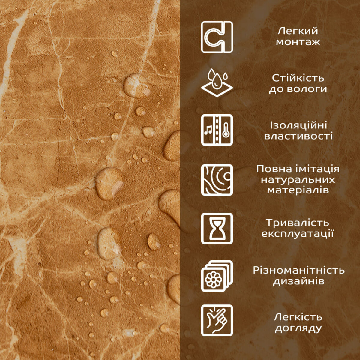 - Імітація натурального матеріалу (мармур, камінь)