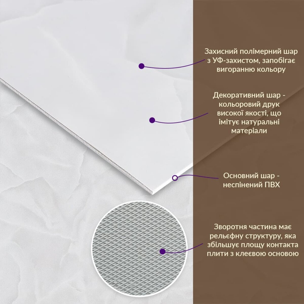 - Імітація натурального матеріалу (мармур, камінь)