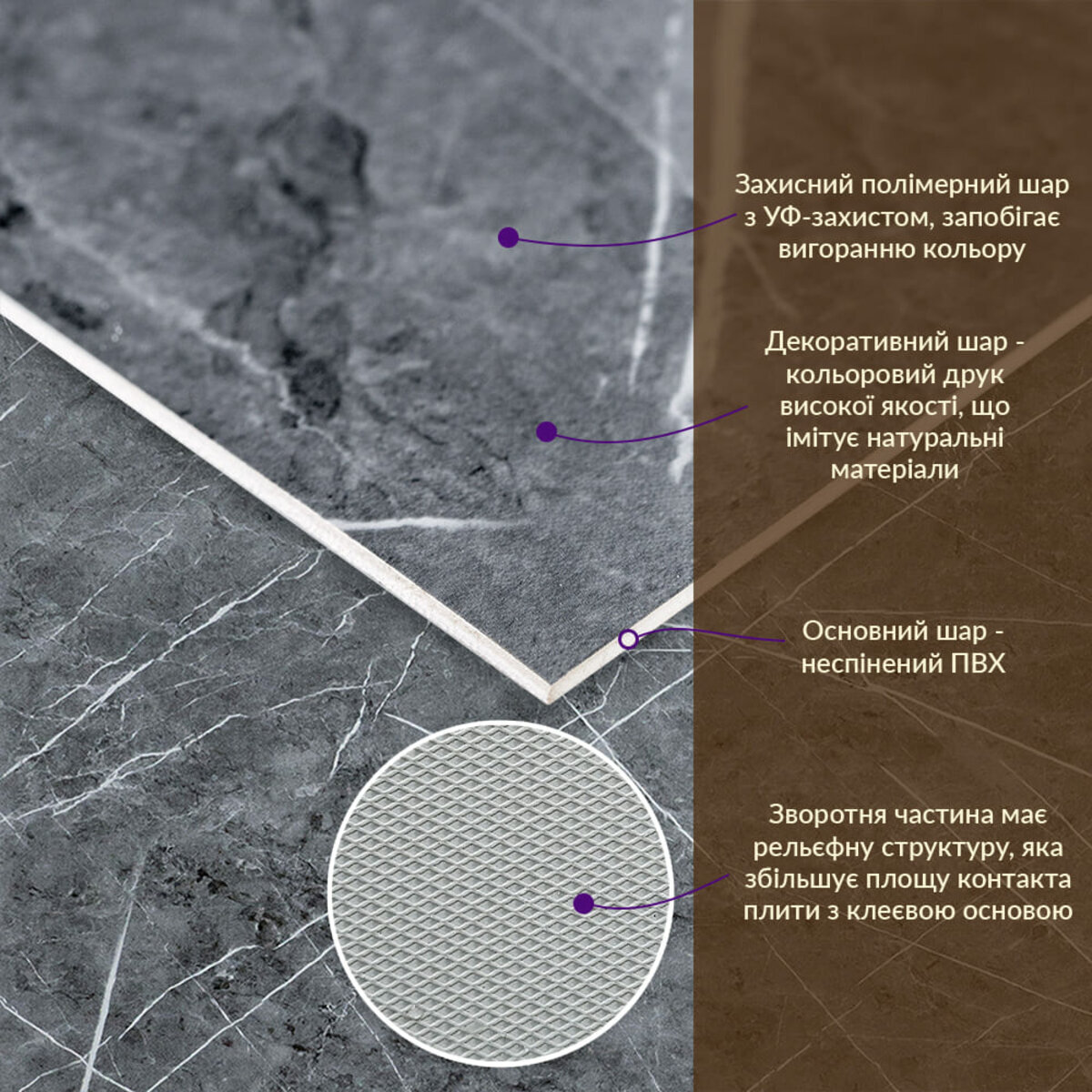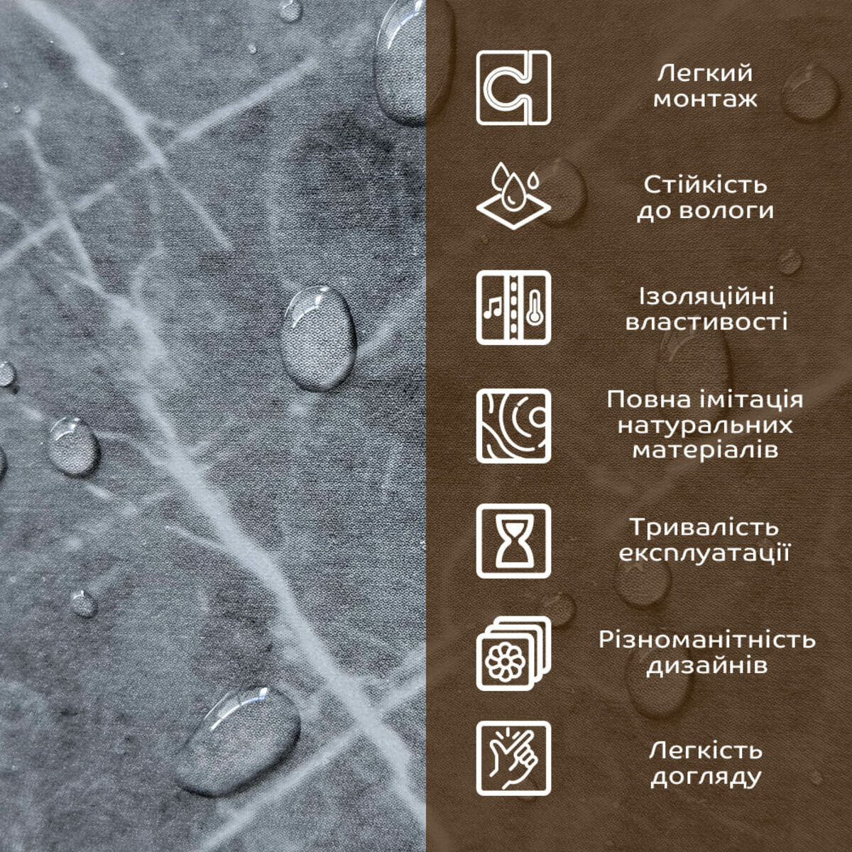 - Імітація натурального матеріалу (мармур, камінь)