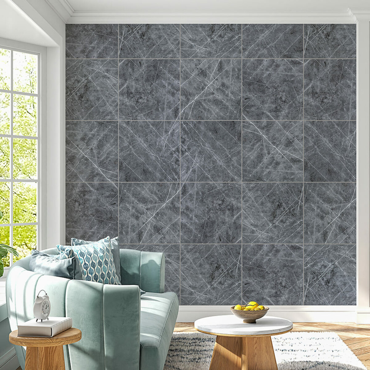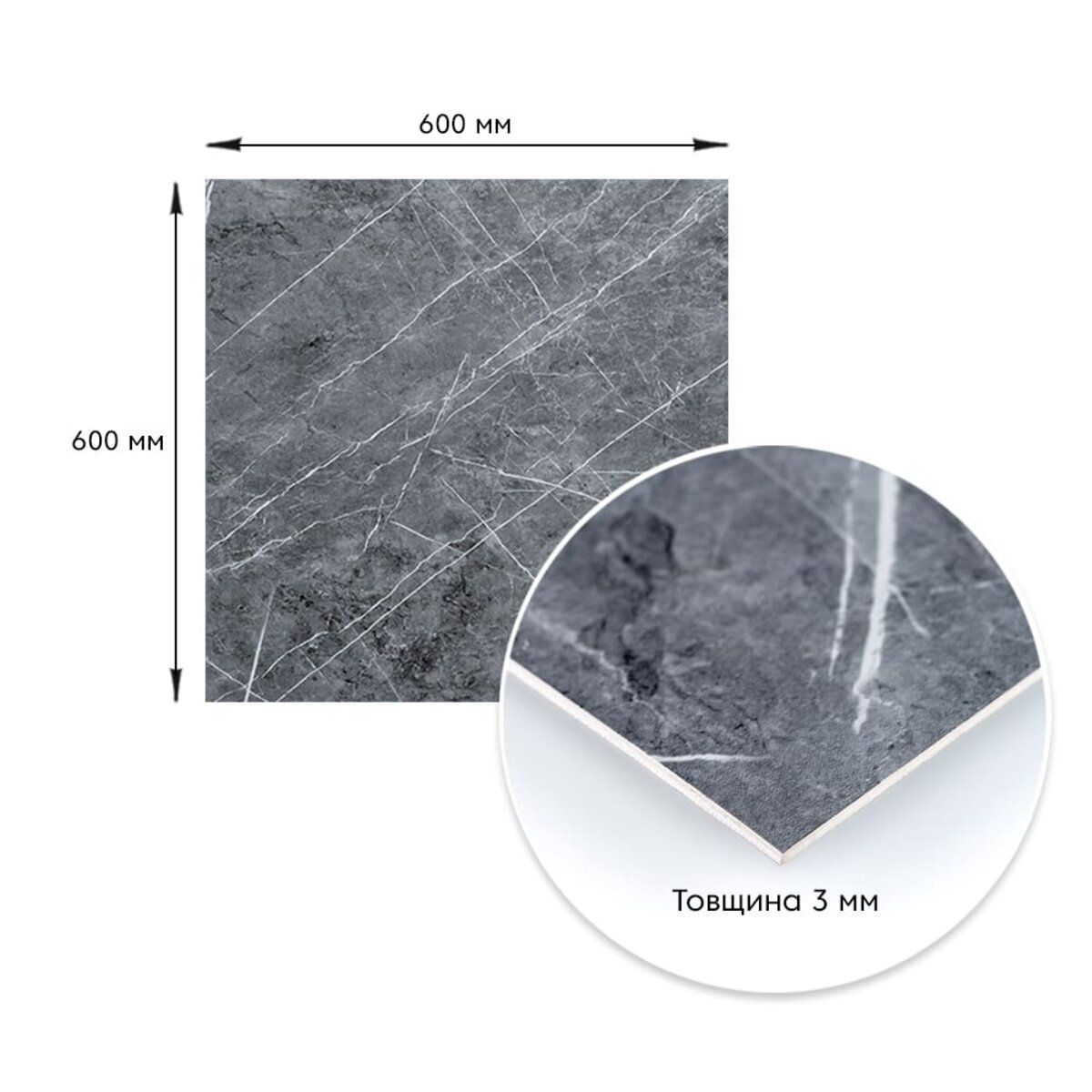 Характеристики - Декоративна ПВХ плита 600х600х3мм Сірий натуральний мармур (S) SW-00001627
