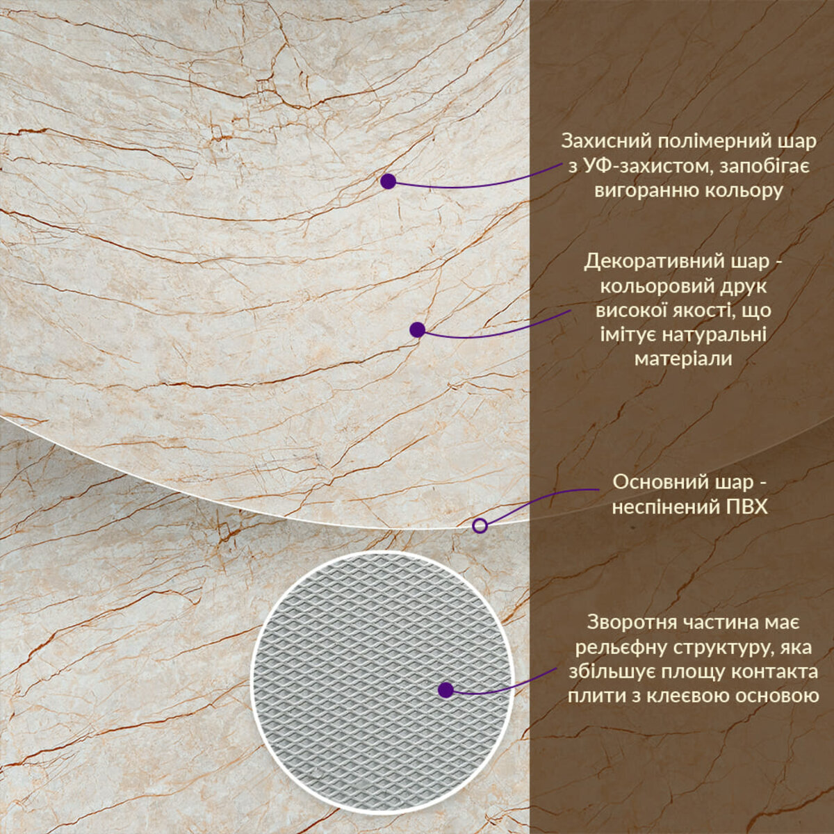 Характеристики - Декоративна ПВХ плита1,22м х 2,44м х 3мм Світло-бежевий мармур SW-00001408