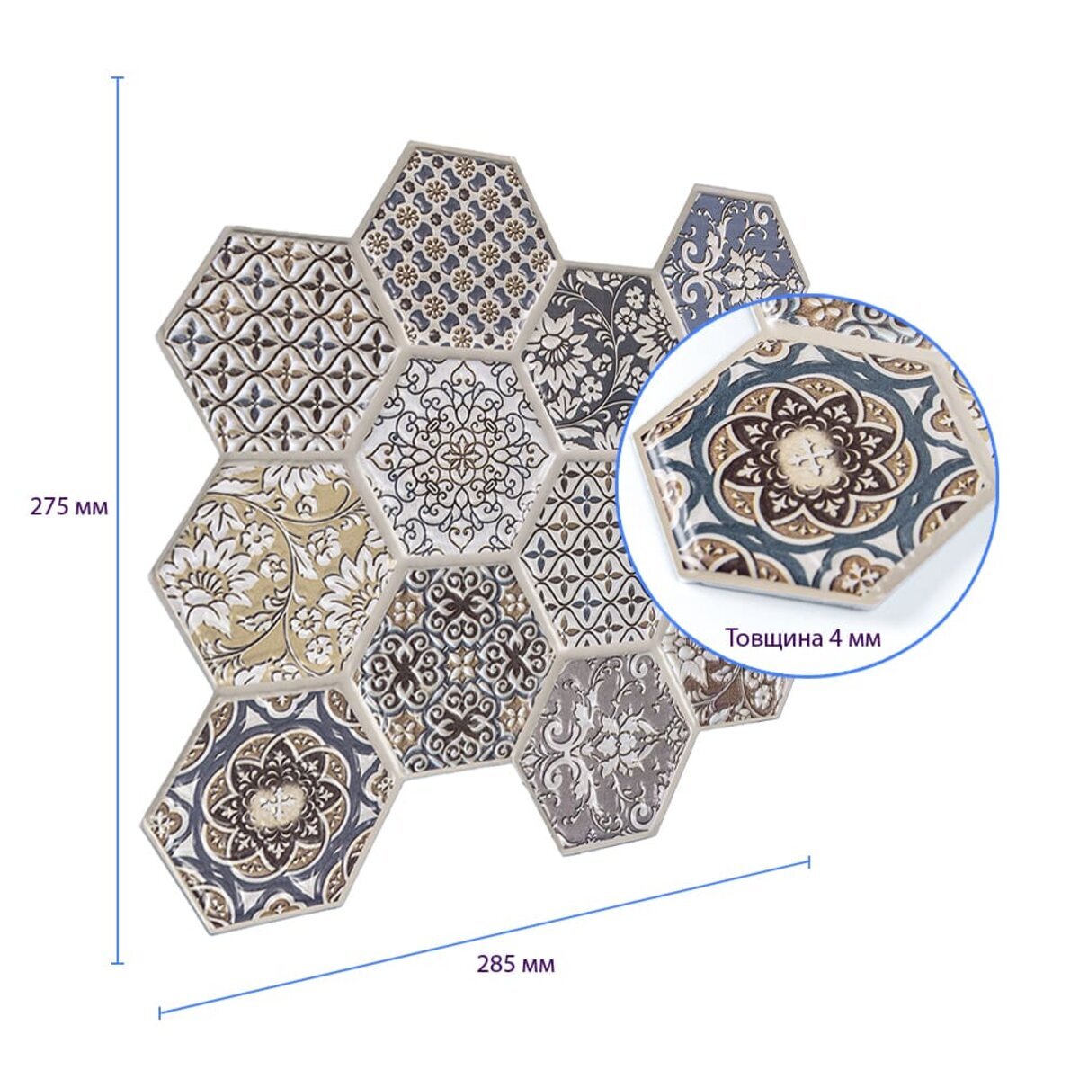 Опис - Декоративна ПВХ плитка на самоклейці 275х285х4мм Соти, ціна за 1 шт. (СПП-504) SW-00000673