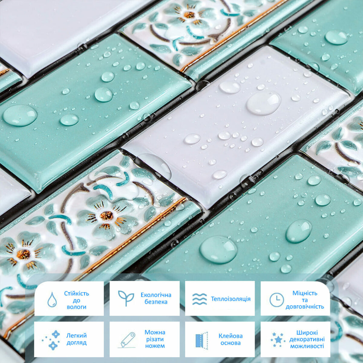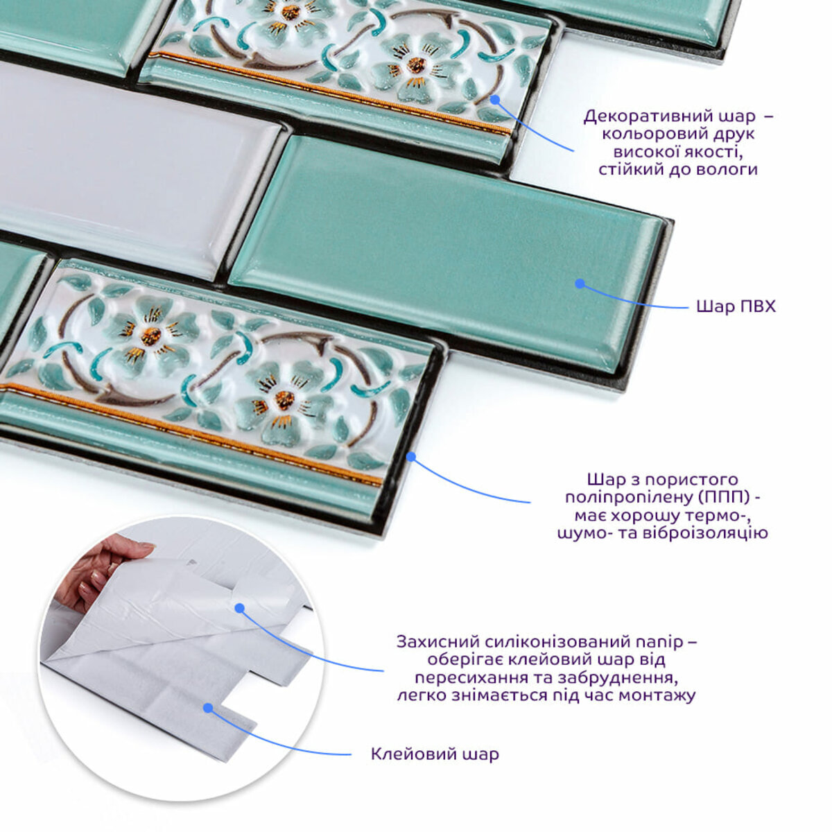 Характеристики - Декоративна ПВХ плитка на самоклейці 300х300х5мм М'ятна, ціна за 1 шт. (СПП-505) SW-00001139