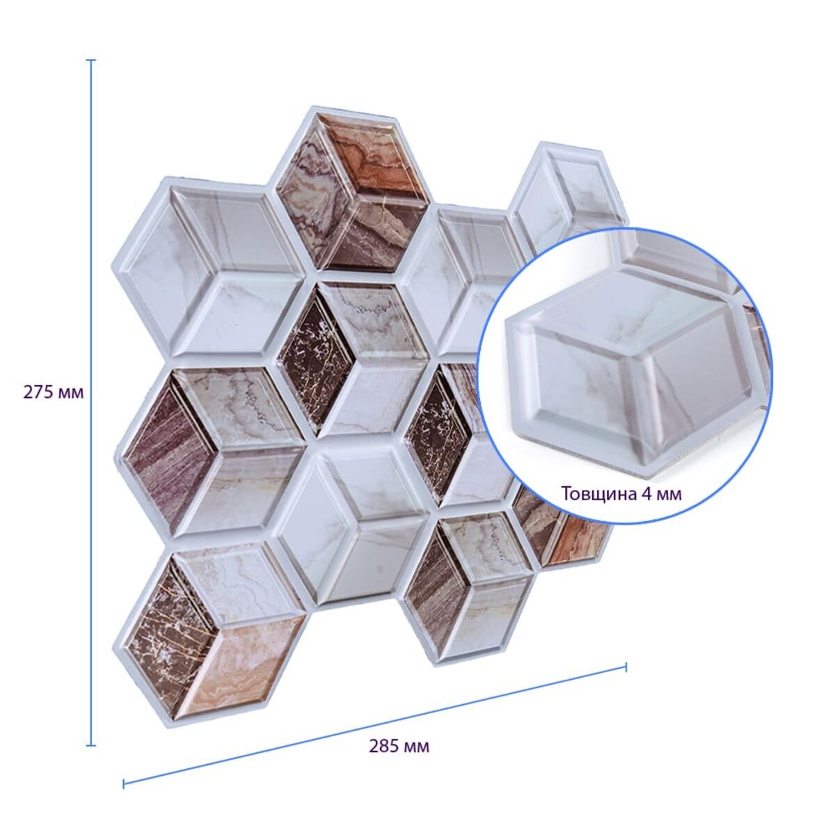 Опис - Декоративна ПВХ плитка на самоклейці 3D 275х285х4мм Кубы, ціна за 1 шт. (СПП-506) SW-00001135