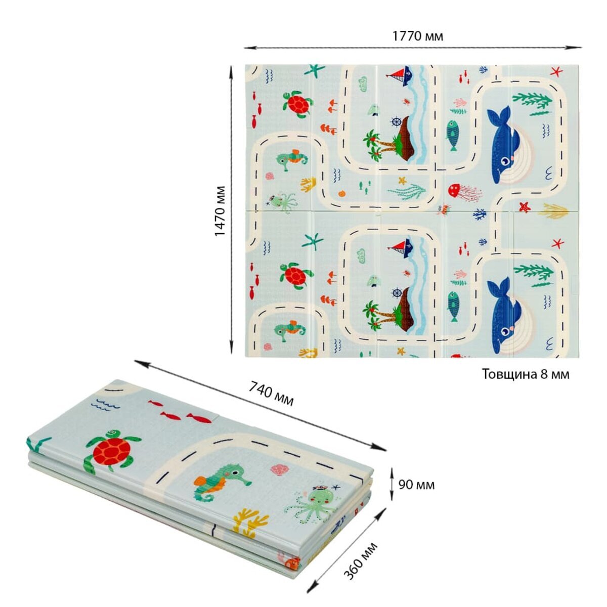 Характеристики - Дитячий складний термокилимок 147см х 177см х 8мм Океан-Зростомір (302) SW-00003032