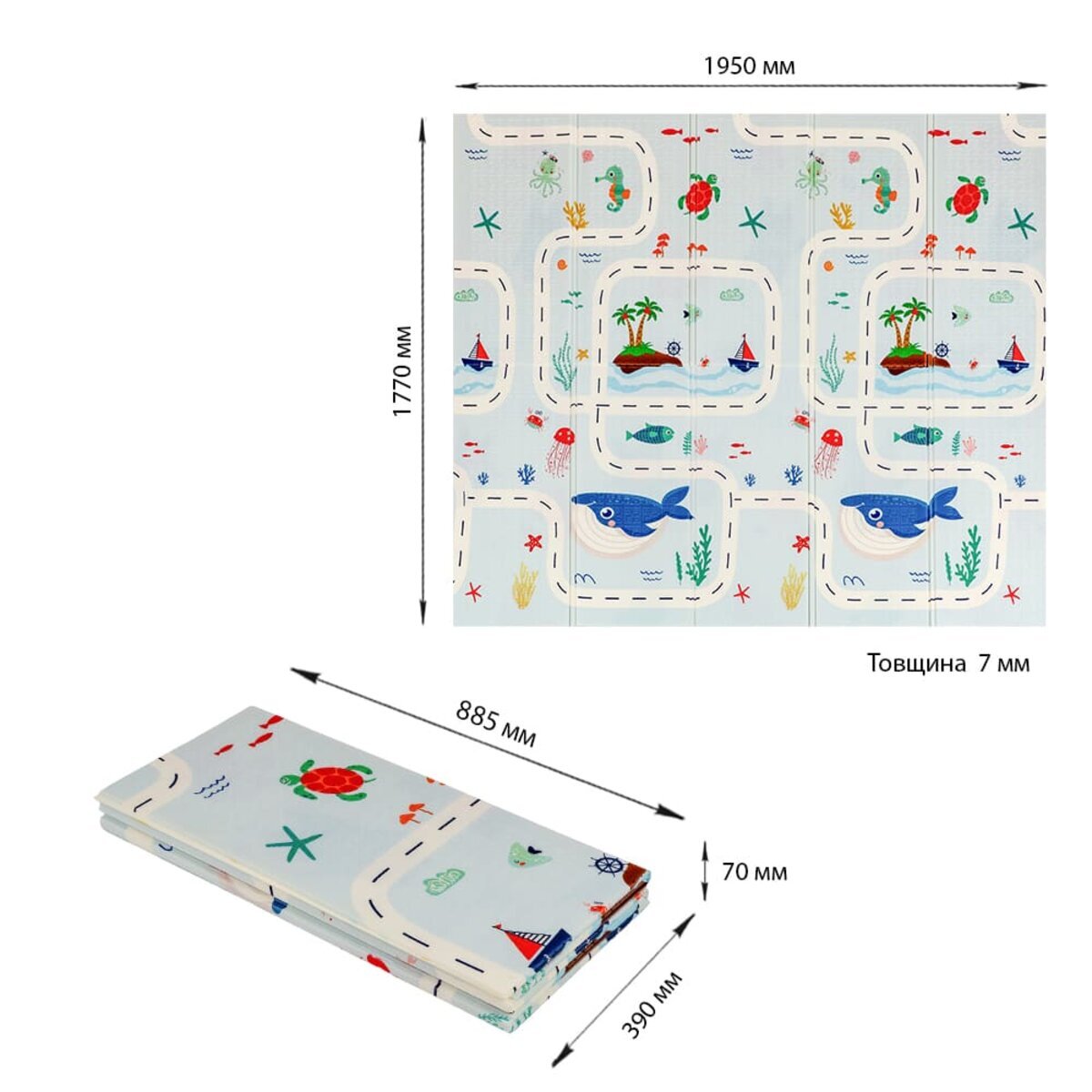 Характеристики - Дитячий складний термокилимок 177см х 195см х 7мм SW-00003036
