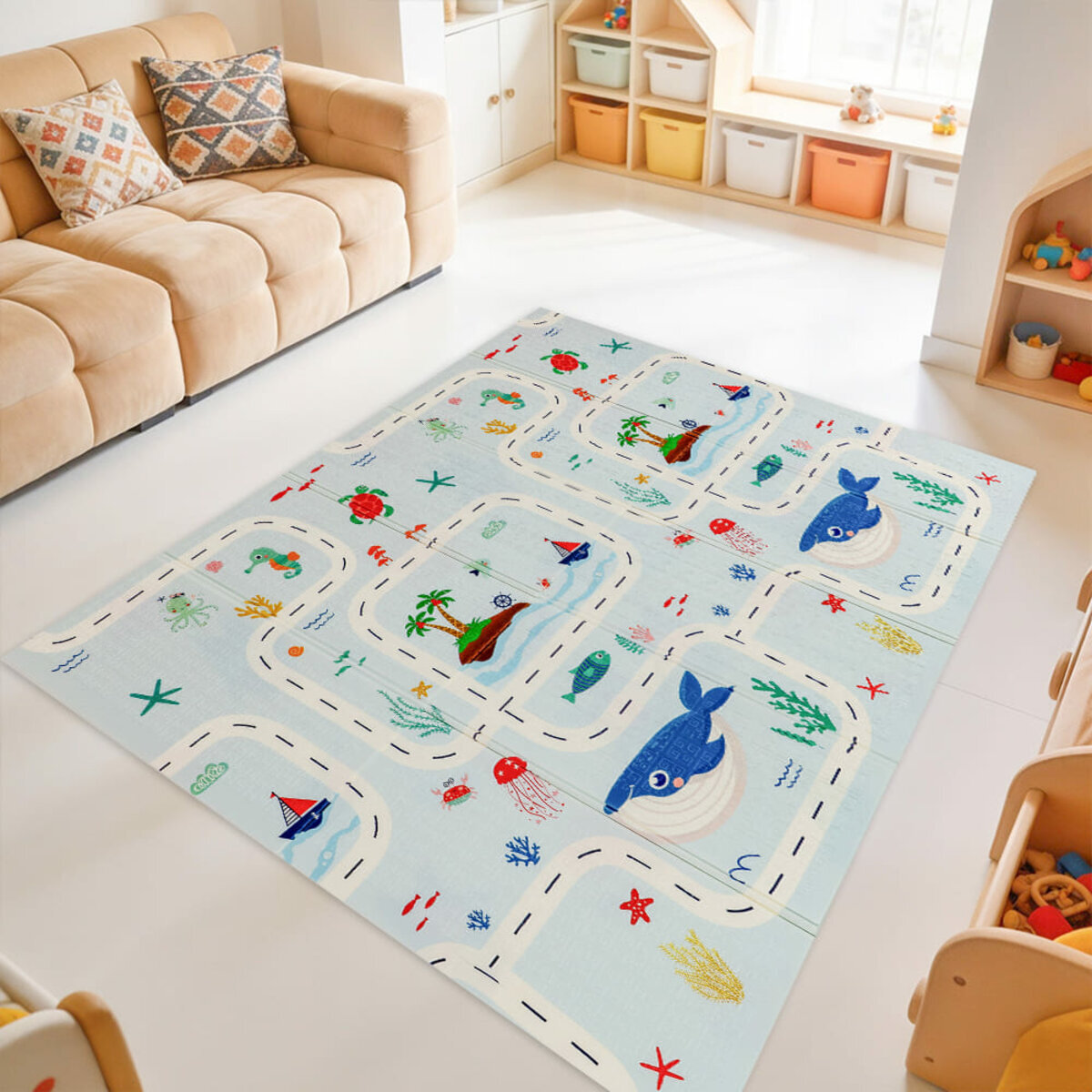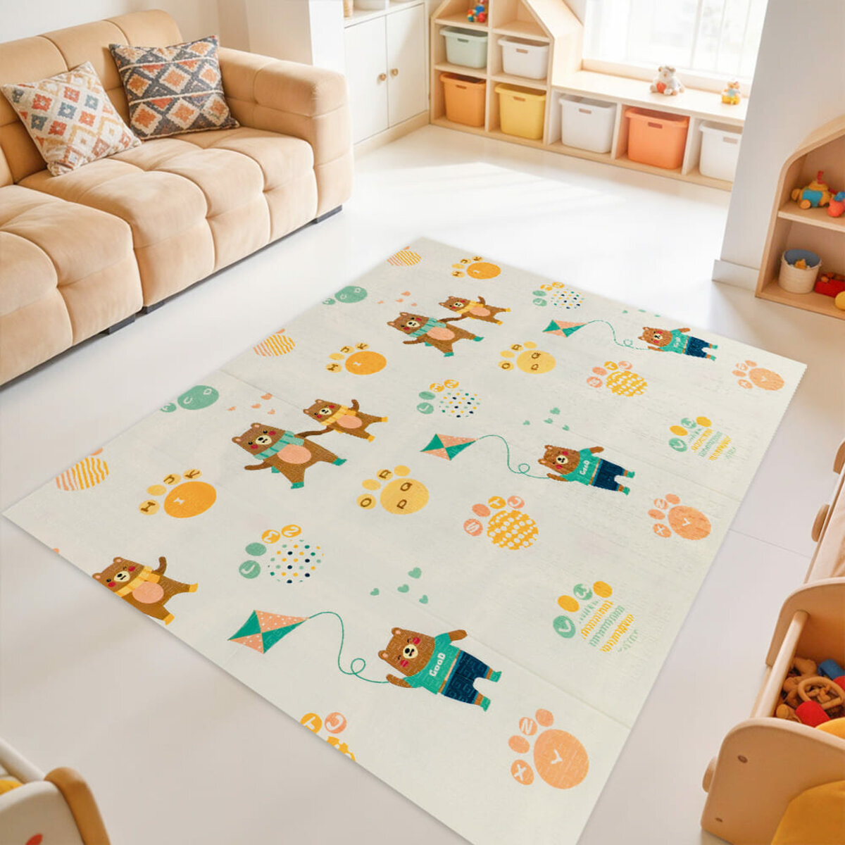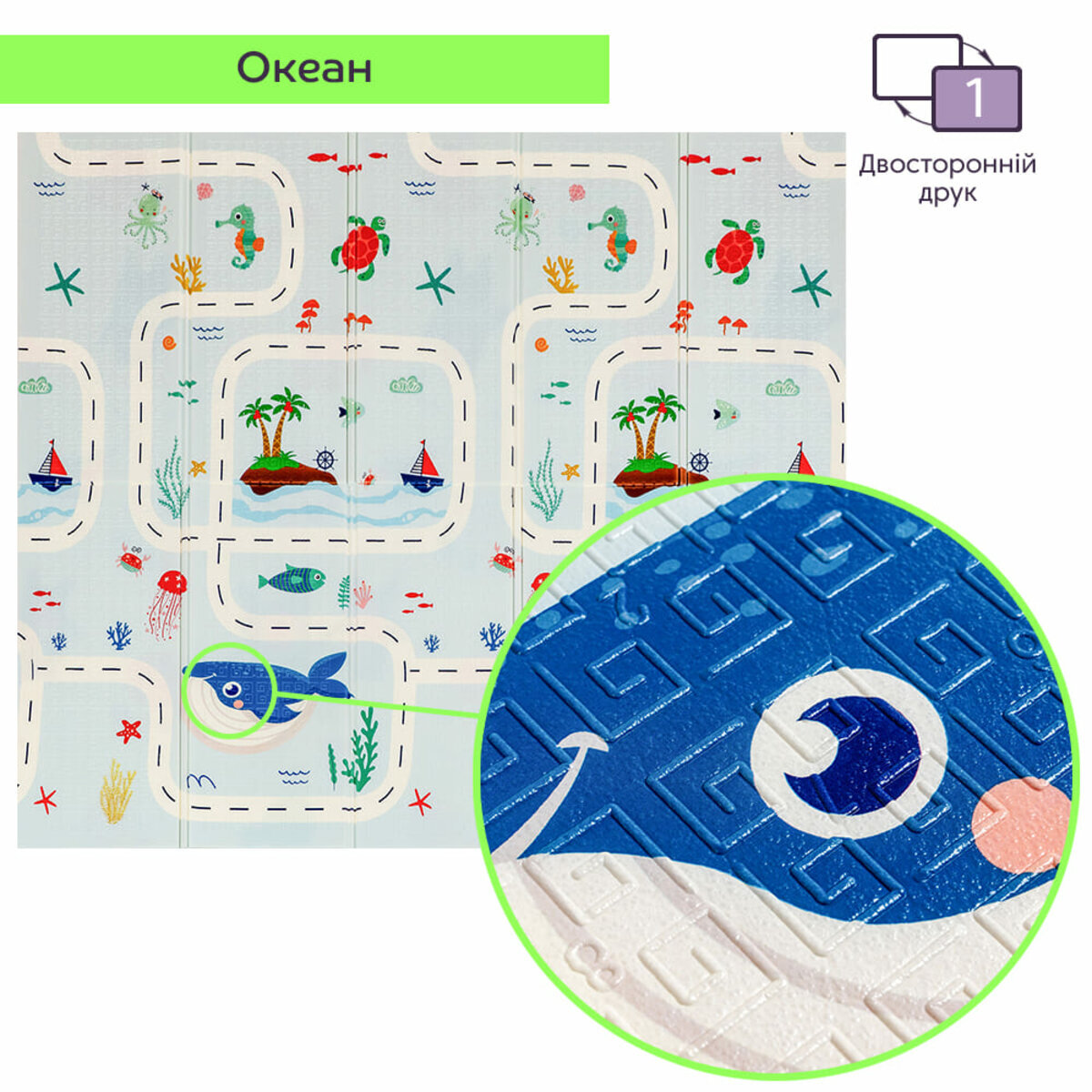 - Не пропускає холоду, а значить дитині буде комфортно грати на підлозі, навіть на плитці;