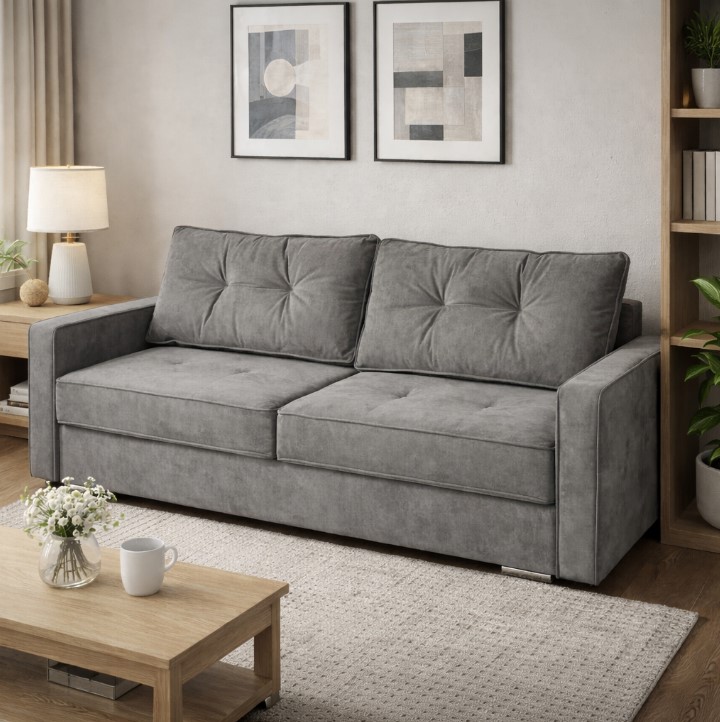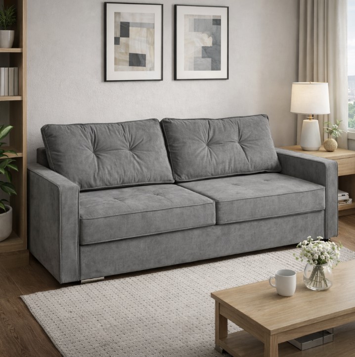 Шукаєте диван у вітальню, що виглядає стильно, але при цьому не вимагає компромісів у комфорті сну? Диван Оскар у сірому кольорі — це модель з чіткими лініями і практичним механізмом єврокнижка. Нейтральний сірий відтінок робить його універсальним рішенням для більшості сучасних інтер’єрів у Львові.