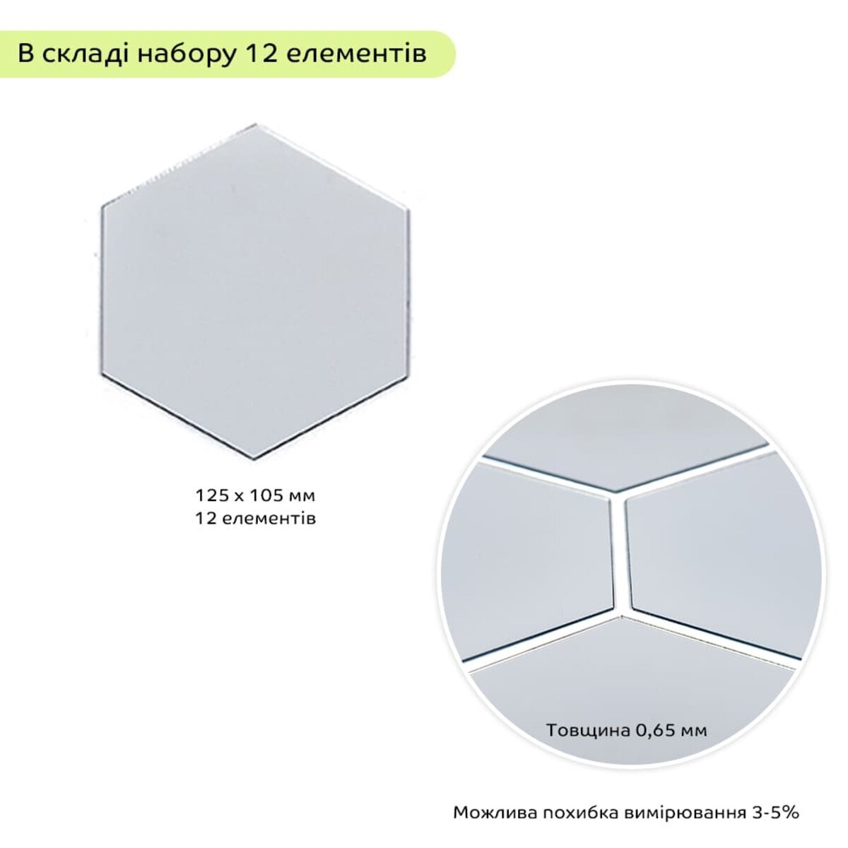 Дзеркальний декор акриловий самоклеючий 125*105мм срібло,12шт (D) SW-00002513