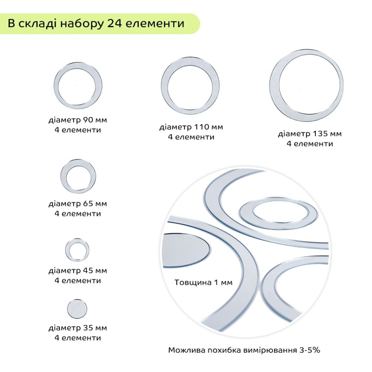 Опис - Дзеркальний декор акриловий самоклеючий срібло, 24шт (D) SW-00002523