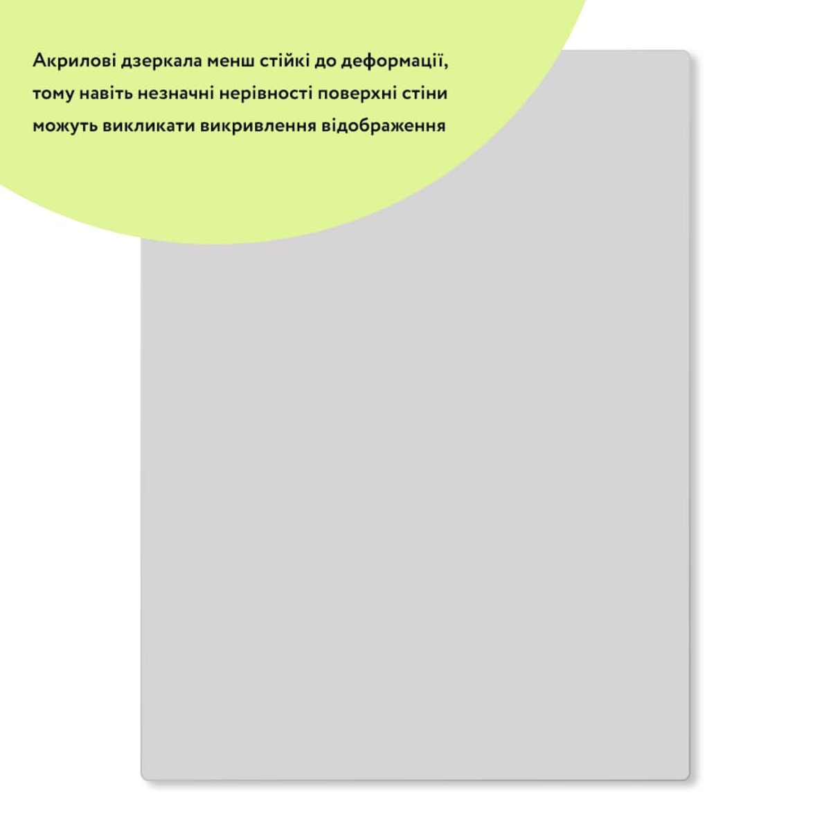 Вимоги до поверхніДля успішного монтажу акрилового дзеркала, поверхня, на яку воно буде встановлюватися, повинна бути:
