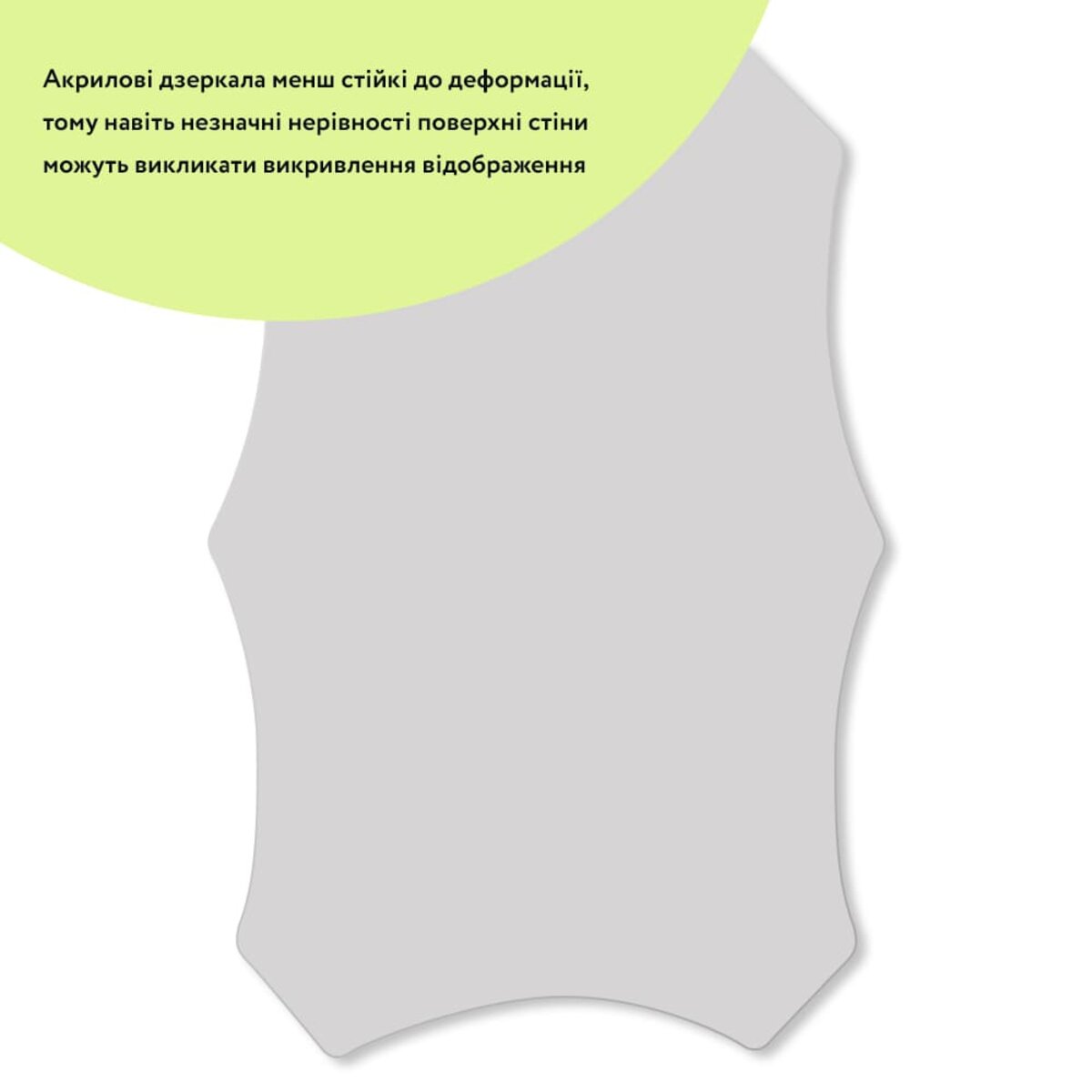 - Міцність: акрил стійкий до ударів і ламається набагато рідше ніж скло, що робить акрилові дзеркала безпечними.
