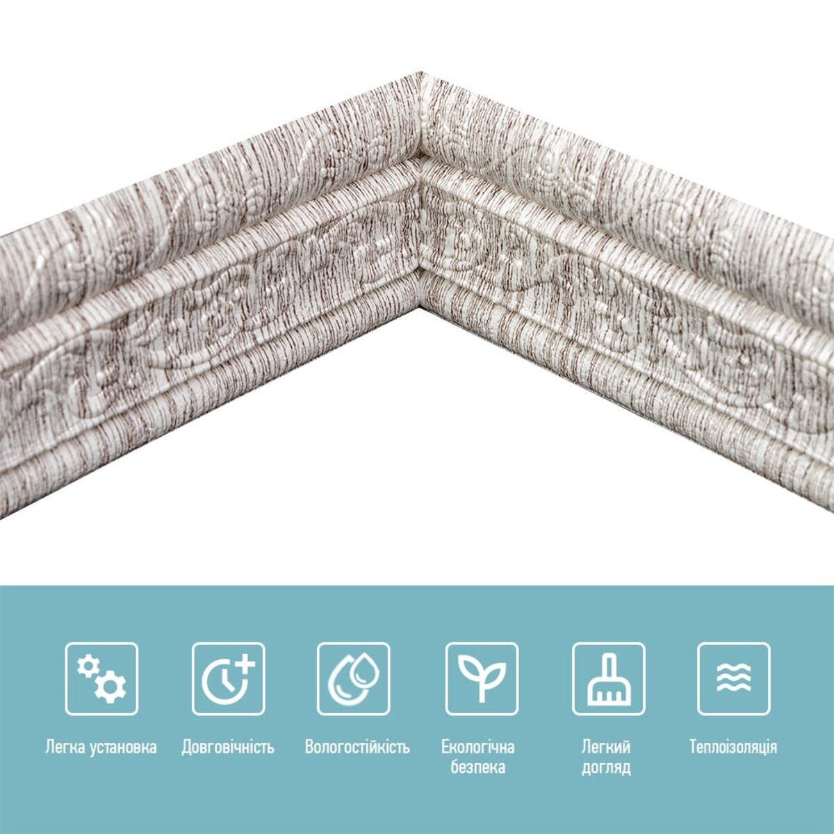 Плінтус ППППлінтус з пористого поліпропілену - декоративний елемент, який встановлюється вздовж нижньої частини стіни для прикриття стику між стіною та підлогою. Завдяки клейовій основі він легко монтується, без застосування додаткових матеріалів і є ідеальним доповненням у різних інтер’єрних рішеннях.