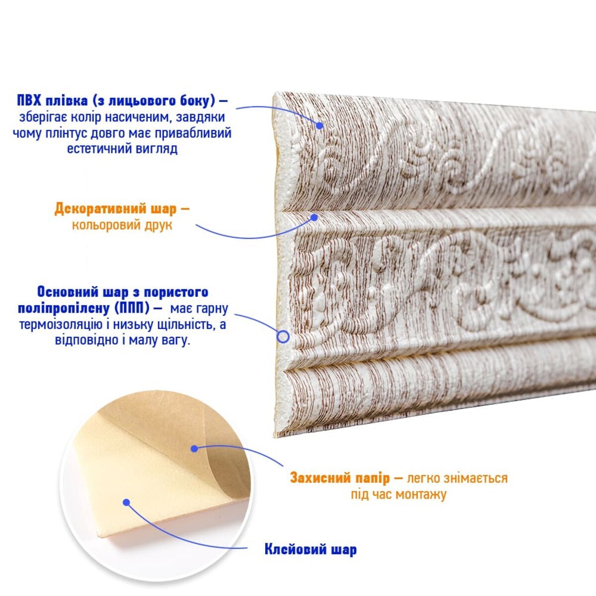 Плінтус складається з наступних шарів: